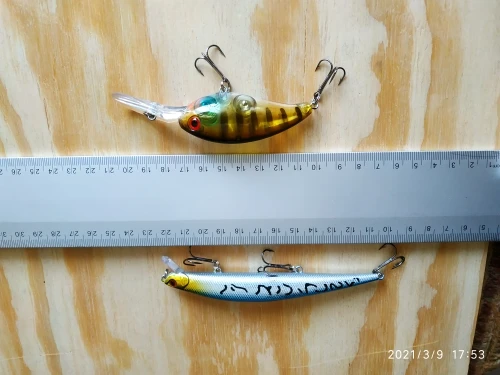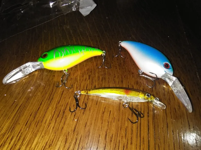 Есть у продавца такие одинаковые воблера, но по разным ценам ( около 1 доллара ,есть около 2) Кто знает в чём отличия - напишите .Взял ради интереса пару штук, уж очень много заказов. Ничего выдающегося для себя я не нашел. Воблер не пролакирован, пластик не прочный, пришёл слегка поцарапанным, системы дальнего заброса естественно нет. Несмотря на то что петли в отдельных камерах, всё таки лучше проклеить, чем в данный момент и занимаюсь. Но надо признать, что крэнк при соответствующей доработке может быть и эффективным, в отличии от миношек, у которых качество отвратительное.