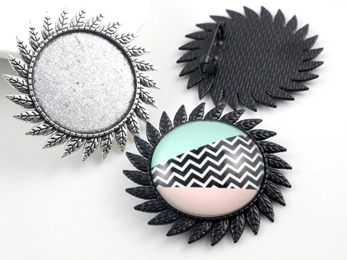 5 шт.лот 30 мм Внутренний размер черная и Античная Посеребренная Цветная брошь булавка Вихревой Стиль кабошон базовая настройка