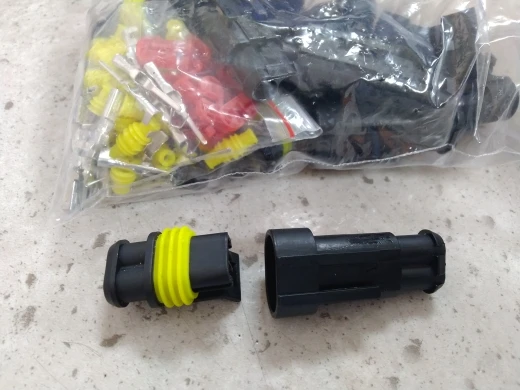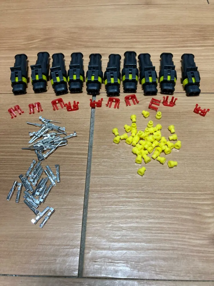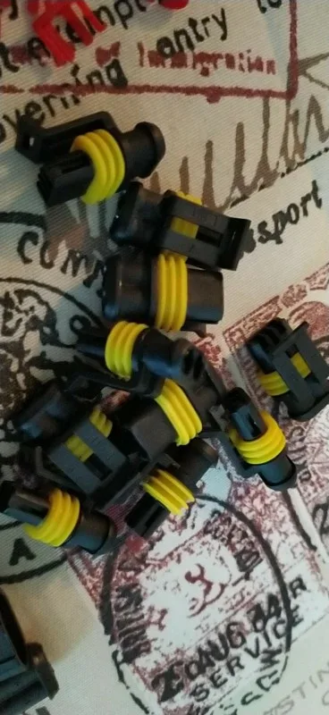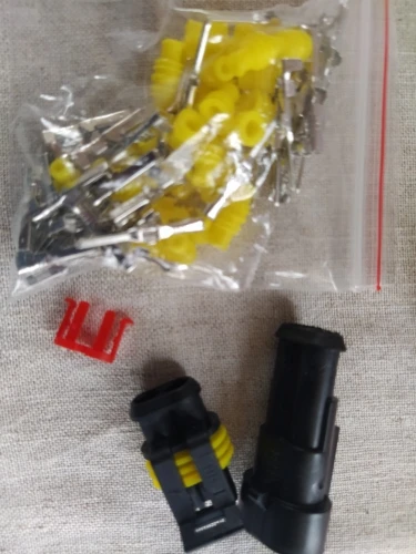 все пришло как в описании. быстро, трек отслеживался. набор из десяти 2-пиновых разъемов, относительно влаго и пылезащищенных. лучше скруток и клеммников