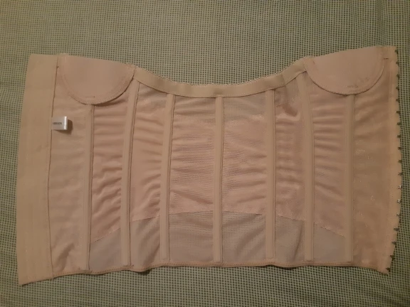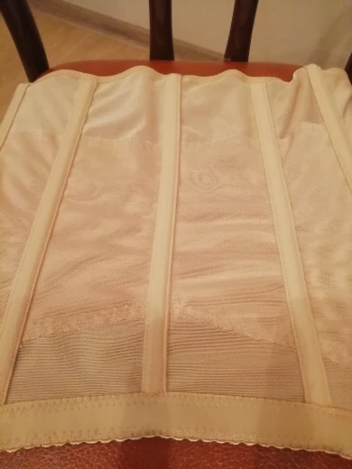 Корсет отличный, все соответствует описанию, пришел быстро, за 2е недели. Параметры талии 69см, утянул до 64см. Корректирует силуэт под тип "песочные часы". С внутренней стороны жёсткие вставки приятные к телу. Если платье будет обтягивающее и из тонкого материала, будет видны выступы от застежек корсета