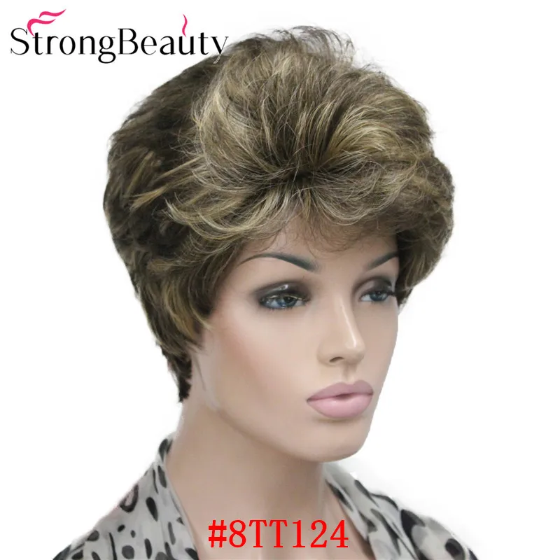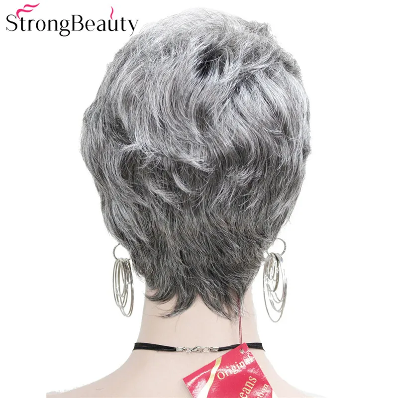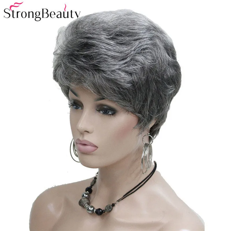 StrongBeauty синтетические короткие прямые волосы, пышные натуральные светлыесеребристо-серые парики с челкой для женщин, много цветов