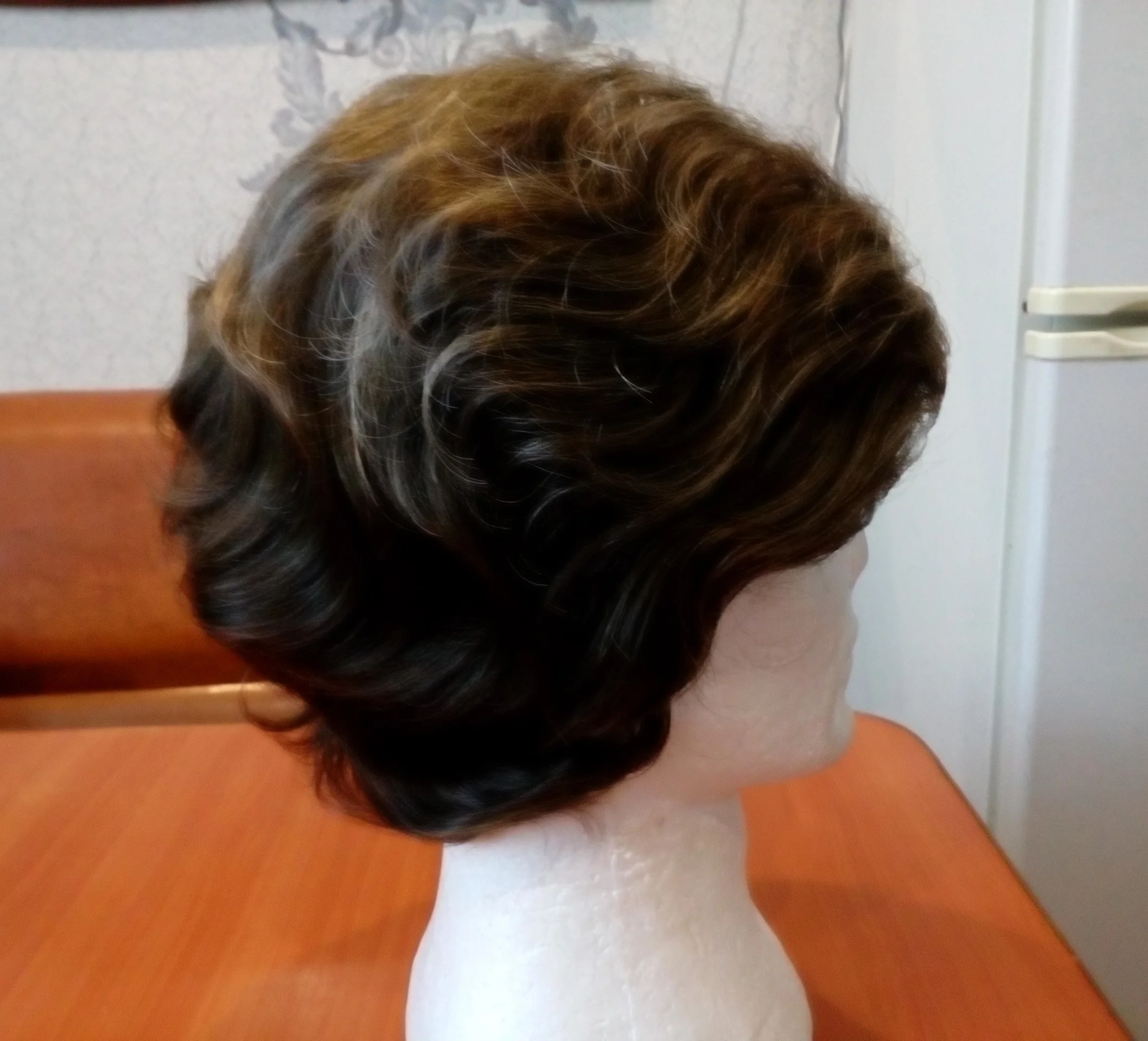 Классный парик, не из натуральных волос, но ощущения от прикосновений как от настоящего. Не смотря на то, что он из искусственного волокна, он не блестит как дешевая синтетика. Но стоит учитывать что для носки нужна шапочка, что будет перекрывать ваш родной цвет волос, тем более если он тёмный. У парика имеется прикорневой начёс, прошит достаточно хорошо, выглядит все очень даже натурально