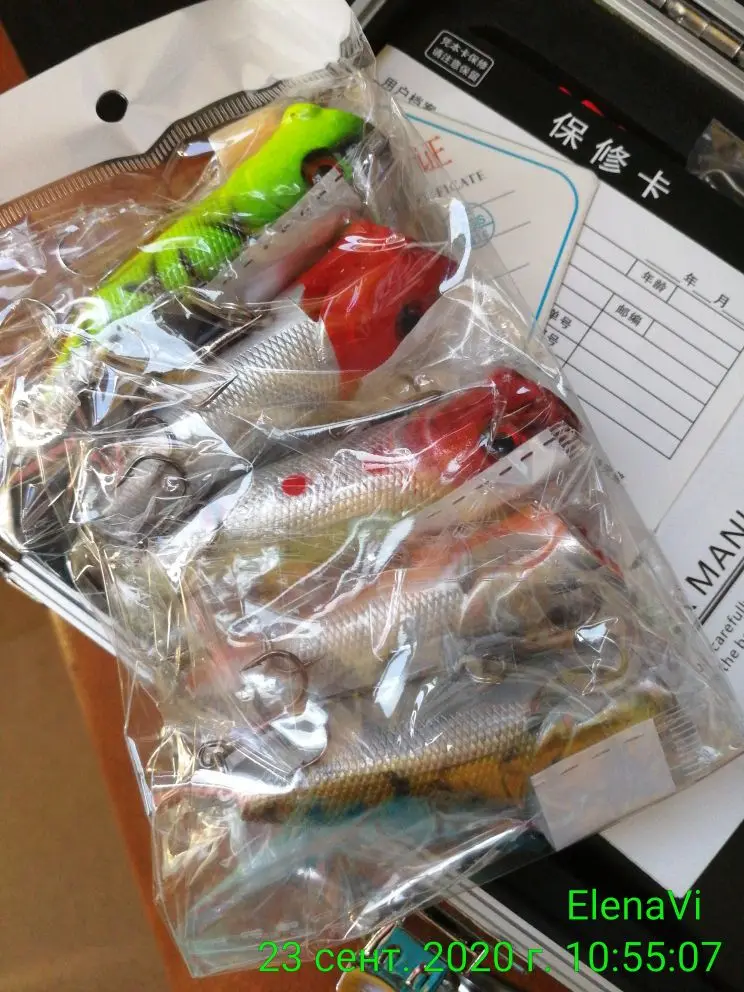 получил через 15 дней после оплаты. в воде ещё непробывал. единственный минус = нет регулеровки подсветки. ещё подарок 5 шт воблеров положили.