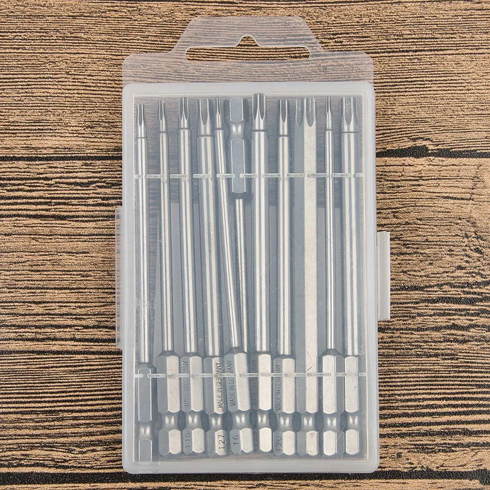 Материал: высококачественная легированная сталь S2 Тип головки: Torx Общая длина: 100 мм. Тип хвостовика: 6,35 мм Размер: T6, T7, T8, T9, T10, T15, T20, T25, T27, T30, T40 Наклон упаковки: 11 отверток