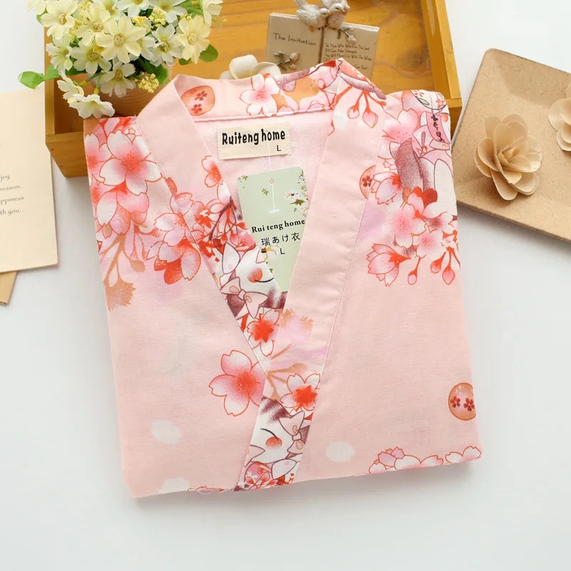 Халат женский Kawaii sakura кроличье кимоно, Лето Шорты пижамные наборы, 100% хлопок, японский шорты юката, халат, одежда для сна