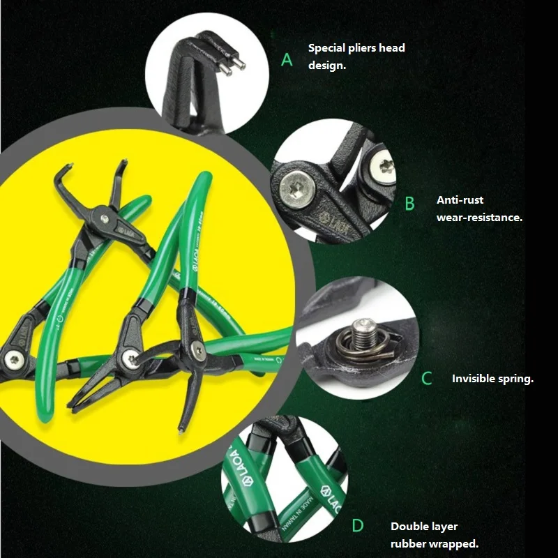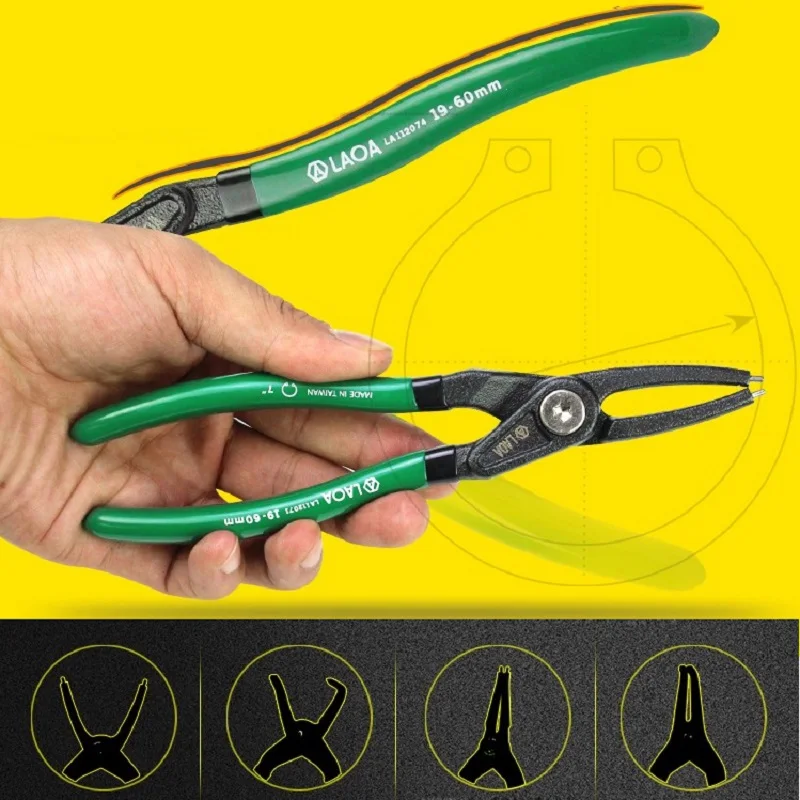 Щипцы LAOA Circlip 5 дюймов, изогнутый прямой наконечник, внешний, внутренний, многофункциональный, Сделано в Тайване, ручные инструменты