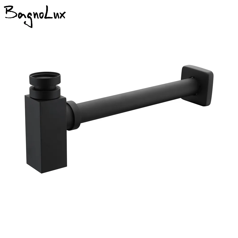 Черная матовая P-образная ловушка, оптовая продажа, квадратная, Альба, винтажная латунная ловушка для бутылок, выдвижная сантехника для отходов замена труб