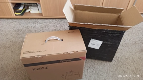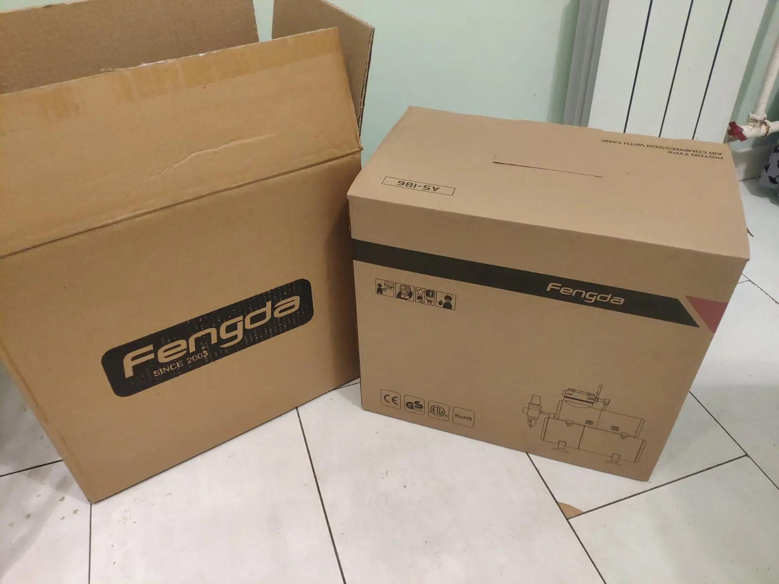 Заказ оформлял с доставкой из России. Доставили до адреса в Москве за 5 дней. Упаковка целая, без повреждений. Но внутри пенопласт был поломан. Сам компрессор без повреждений. Все работает хорошо. Давление до 4 атмосфер в баке набирает за 1мин. 35сек. и отключается, включается при снижении давления до 3,2 атмосферы. Измерил уровень шума - 66,5 dB. К сравнению, мой компьютер шумит на 56 dB. При работе корпус греется, но не сильно. Итак, я компрессором доволен. Можно включать и работать с ним по ночам. Продавца - рекомендую.