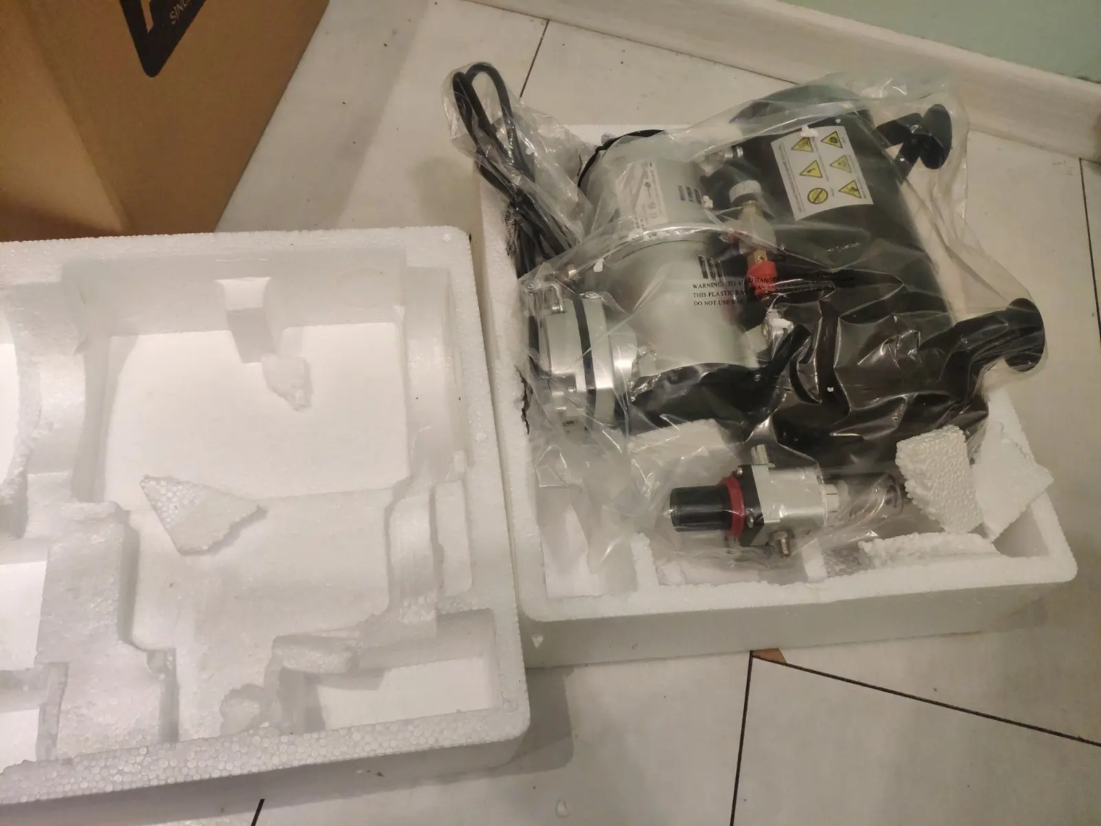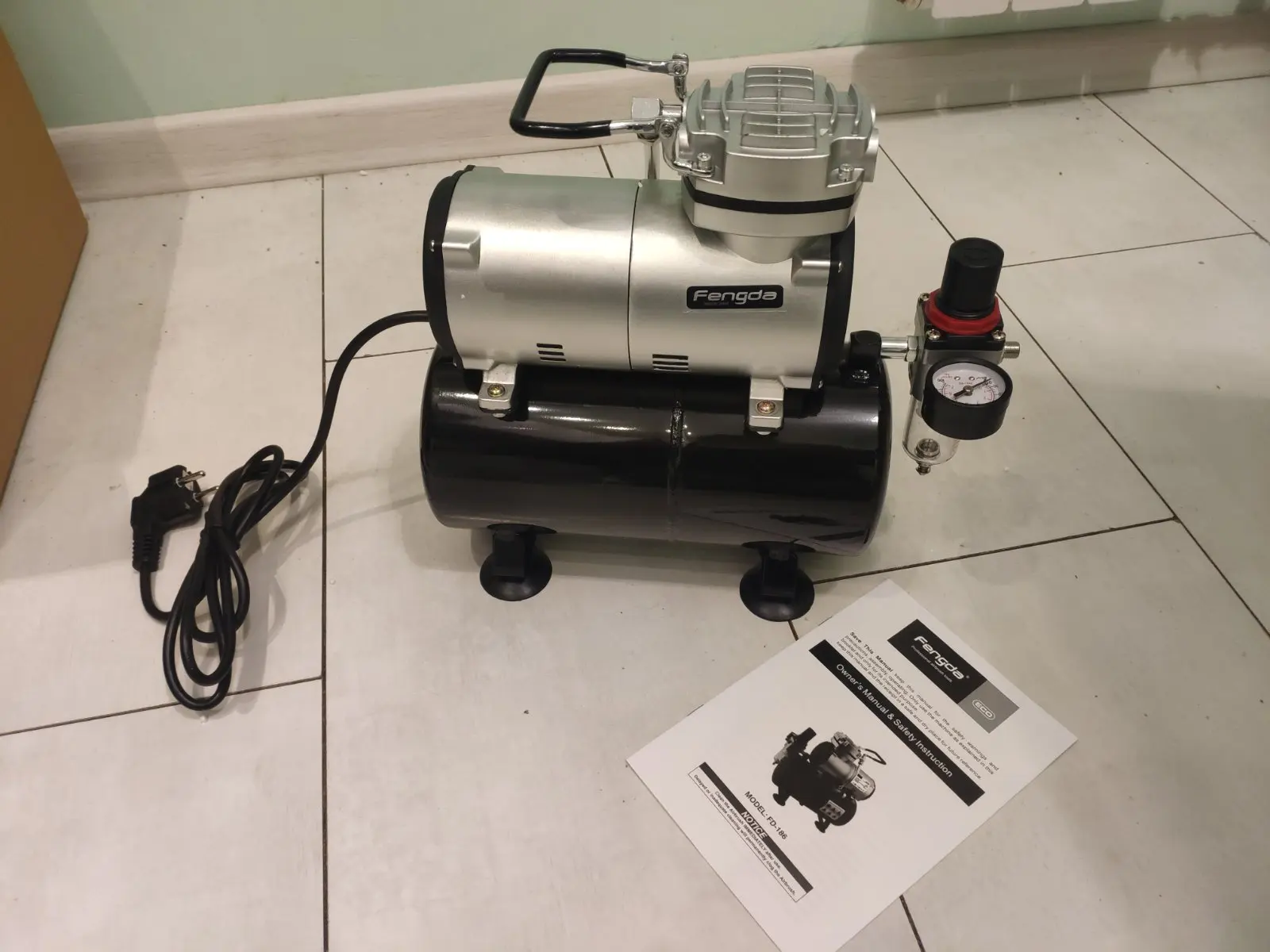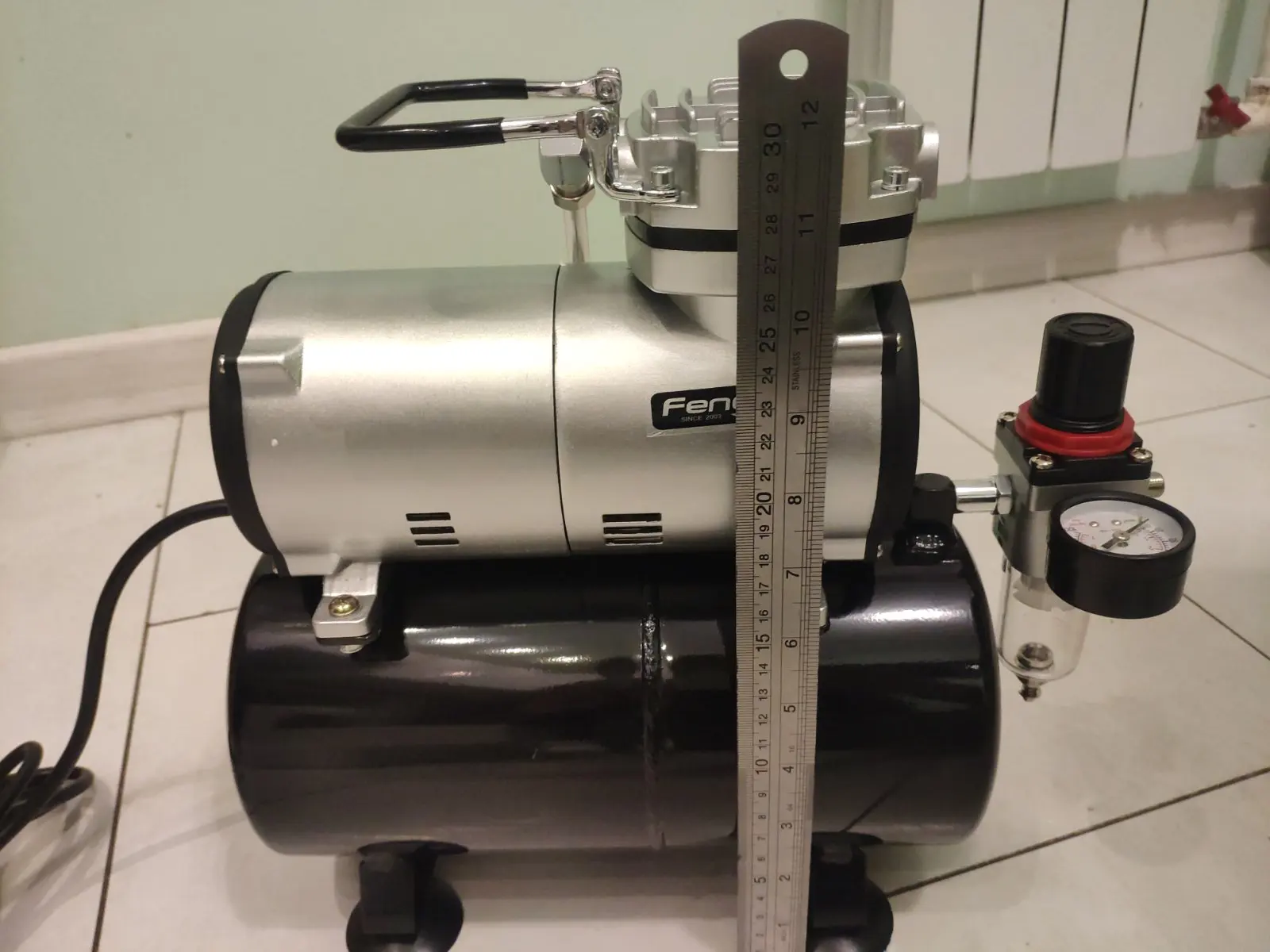 ОЧЕНЬ крутой компрессор! Приехал быстро (за неделю), но я не отмечал получение заказа, так как ещё дозаказал переходник с 1/8" на 1/4", чтобы подключить к компрессору обычный пневматический шланг. Компрессор тихий, и шум его работы можно сравнить с работой стиральной машины в режиме отжима. Резьба на выходе - 1/8" (будьте внимательны)! Качает ровно до 4 бар, клапан сброса воздуха и реле давления работают нормально. Покупал себе для продувки техники от пыли. В будущем я хочу докупить ещё два ресивера, чтобы увеличить объём воздуха до 9 литров.