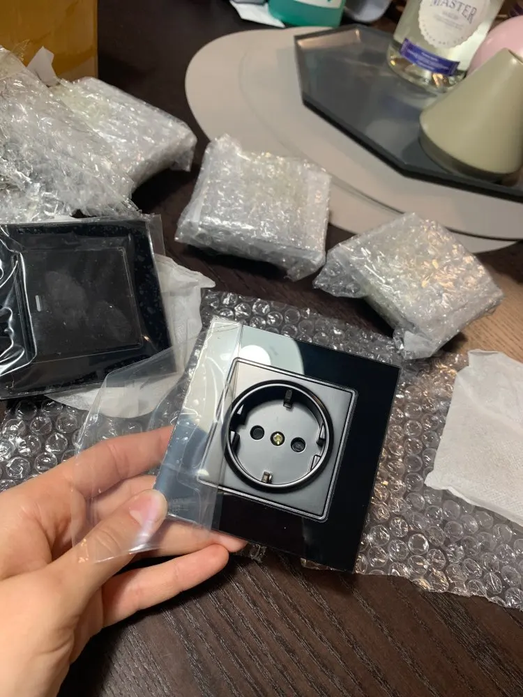 Упаковано хорошо,всё пришло целым и даже коробка не мятаяТовар отслеживался,получал на почте. С продавцом не общался. Шло около 20 дней до Урала. Розетки на вид отличные,чёрная стеклянная глянцевая панель смотрится шикарно! Единственное,нужно ставить квадратные подрозетники. Так что заранее продумайте,где их брать-в строительном у себя,или здесь у продавца. Самый красивый цвет розеток-чёрный. До этого брал пару белых-выглядят не так,как чёрные