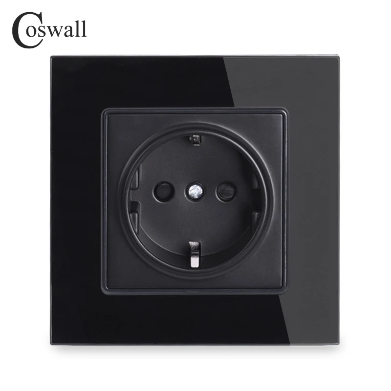 Настенная розетка Coswall с заземлением, из хрустального стекла, 16 А, черная, европейского стандарта, электрическая розетка 86 мм х 86 мм