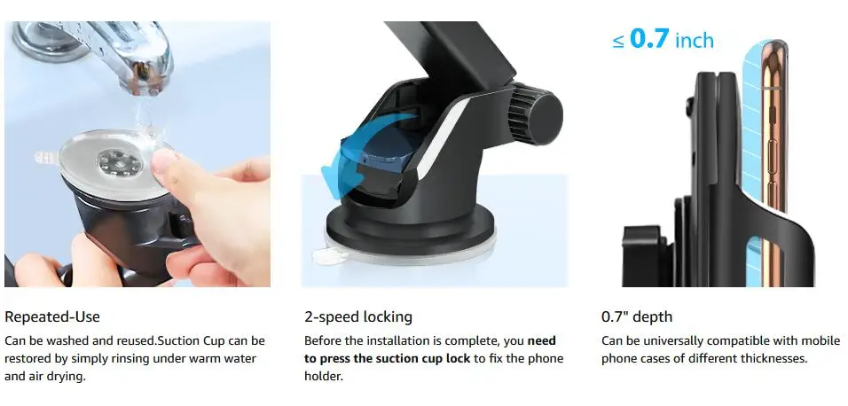 【 Универсальный автомобильный держатель 3 в 1 Автомобильное крепление 3 в 1 может установить на вентиляционное отверстие вашего автомобиля/dashboad/лобовое стекло для ваших нужд.【Простота в эксплуатации этот держатель для мобильного телефона для автомобиля поставляется с простыми в сборке деталями, не требующими инструментов. Нажмите, чтобы отпустить, Одноручный замок.【Регулируемый рычаг использует увеличенный диапазон, телескопическая рукоятка, чтобы найти идеальное положение для вашего смартфона на приборной панели или лобовом стекле.【Множественный угол обзора 】 полностью регулируется с вращением на 360 градусов для быстрого просмотра портретов и пейзажей, вы всегда можете найти идеальный угол для быстрого просмотра вашего смартфона.【 Сильная присоска с липким желебра】 это автомобильное крепление для телефона, его супер-сильная присоска, крепление может прилипать не только к гладкой поверхности, но и крепко прикрепить к какой-то текстурированной поверхности, но все еще легко снимается.【Compatible Models】 подходит для устройств шириной от 2,4-3,7 дюймов. Для iPhone 12 11 Pro/X/XR/X Max/XS/8/8 Plus/7/7 Plus/6/6Plus/5s/5c/5/4S; samsung Galaxy S9/S9 Плюс/S8 Плюс/S8 Edge/S7/S6/S5/S4/S3/S2/Note 8/5/4/3/2, HTC One M8; google Nexus 5/4; LG G2/G3.