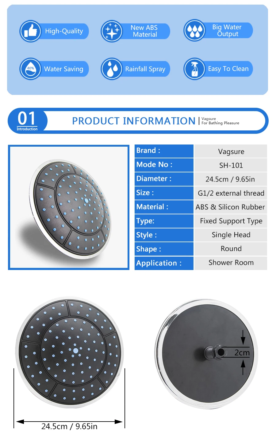 Круглая Лейка для душа из АБС-пластика, размер 25, Потолочная Лейка для душа, аксессуары для душевой кабины G12"