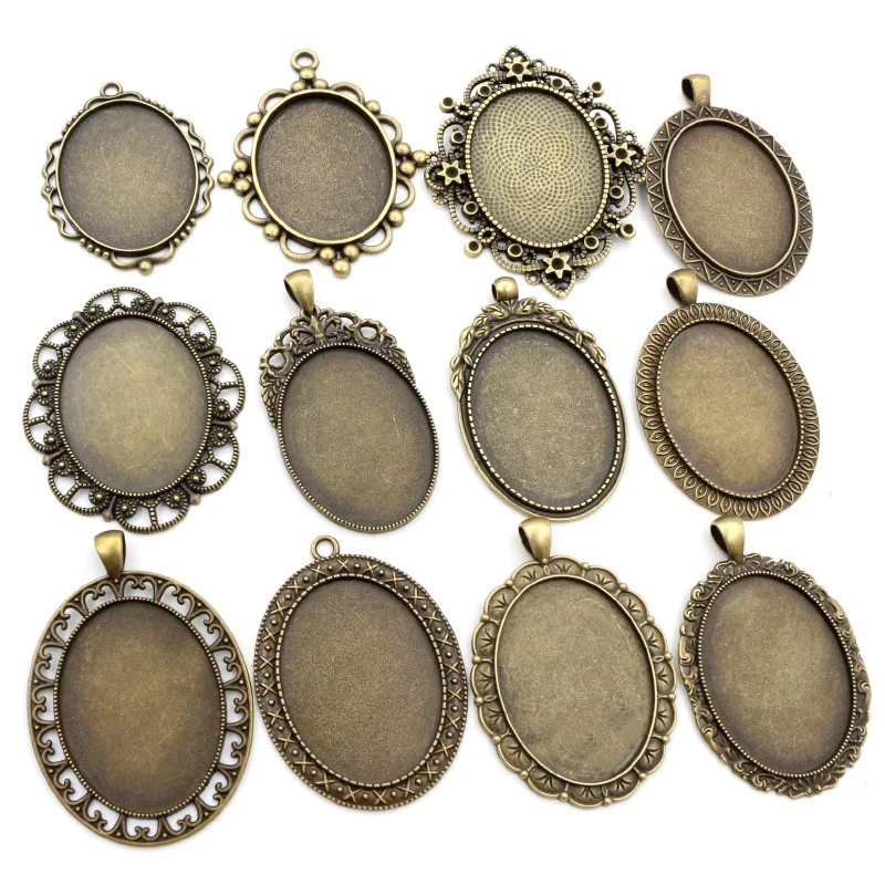 5 шт. 30x40 мм Внутренний размер античный посеребренный и бронзовый и черный кабошон основа Установка Подвески кулон