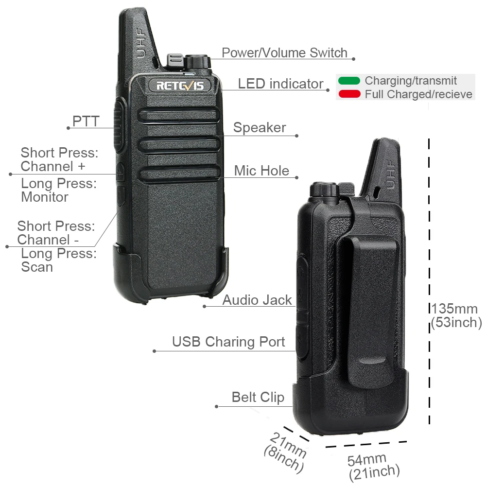 Портативная мини-рация RETEVIS RT622, PMR446 PTT VOX, 4 шт.