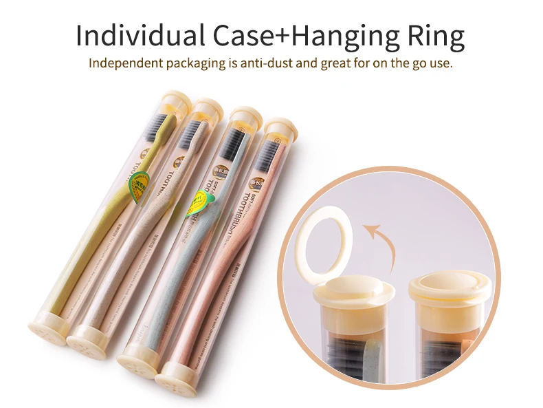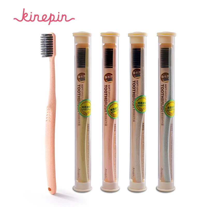 Портативная зубная щетка KINEPIN щетка с древесным углем для взрослых, 24 шт. в комплекте чехол для хранения в дороге