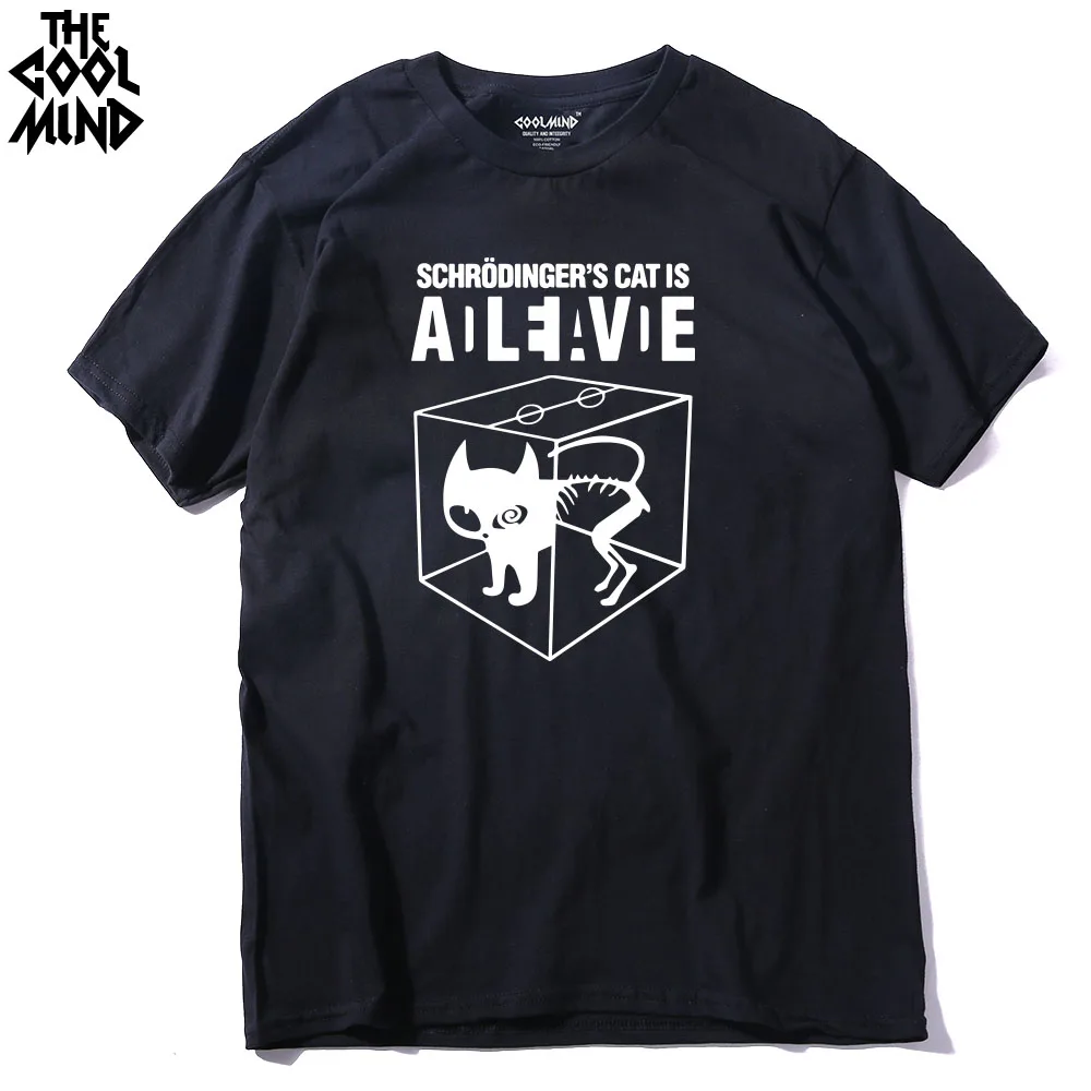 Мужская футболка с коротким рукавом COOLMIND CA0212A schrodinger cat, Повседневная футболка из 100% хлопка с принтом, крутые летние мужские футболки