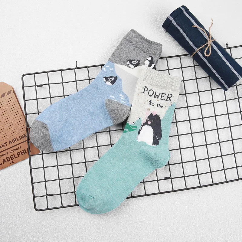 PEONFLY носки с животными из мультфильмов, женские хлопковые пушистые носки с принтом пингвина, теплые носки для пола высокого качества