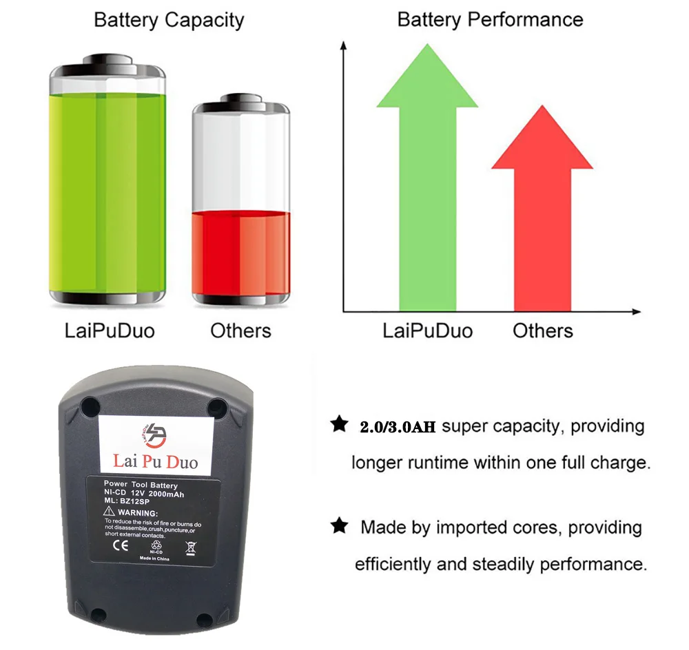 Подошел к Metabo, на пару мм корпус больше оригинала, кейс с шуруповертом закрывается чуть туже. Но главное в характеристиках - заказывал 3.0Ah, по факту после полной зарядки на измерительном приборе показал 1.7Ah. Я изначально не верил в эти завышенные показатели, это уловка продавцов. надо понимать, что за такие деньги не будет 3.0 или 6.0 или 9.0Ah как предлагают. Но! Реальные 1.7 это уже больше чем было в родном 1.2. Поэтому твердая четверка этому аккумулятору, Посмотрим сколько он проработает. Доставка очень быстрая до квартиры в Москве. Рекомендую!