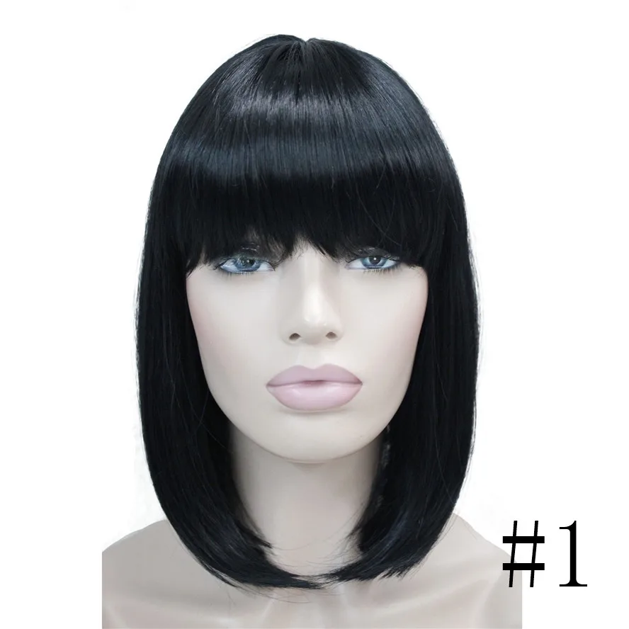 StrongBeauty женские парики Neat Bang Bob стиль с короткими прямыми волосами черныйсветлый Синтетический Полный парик 6 цветов