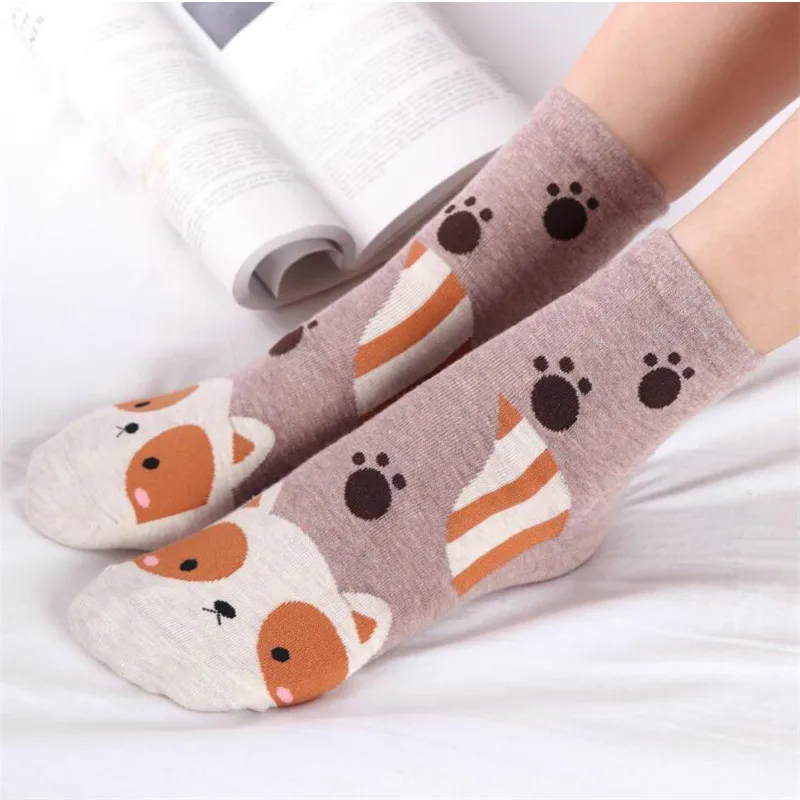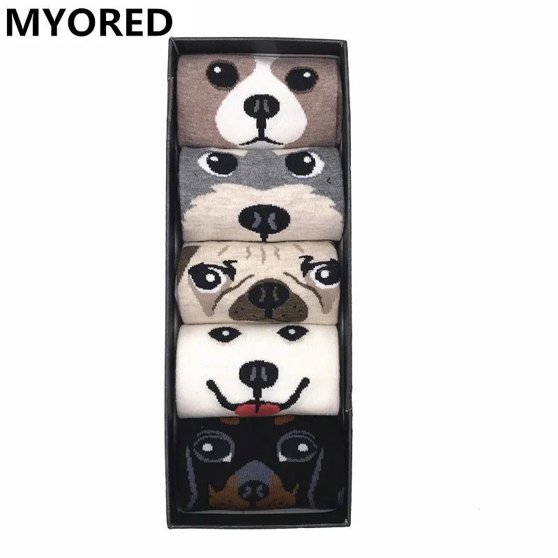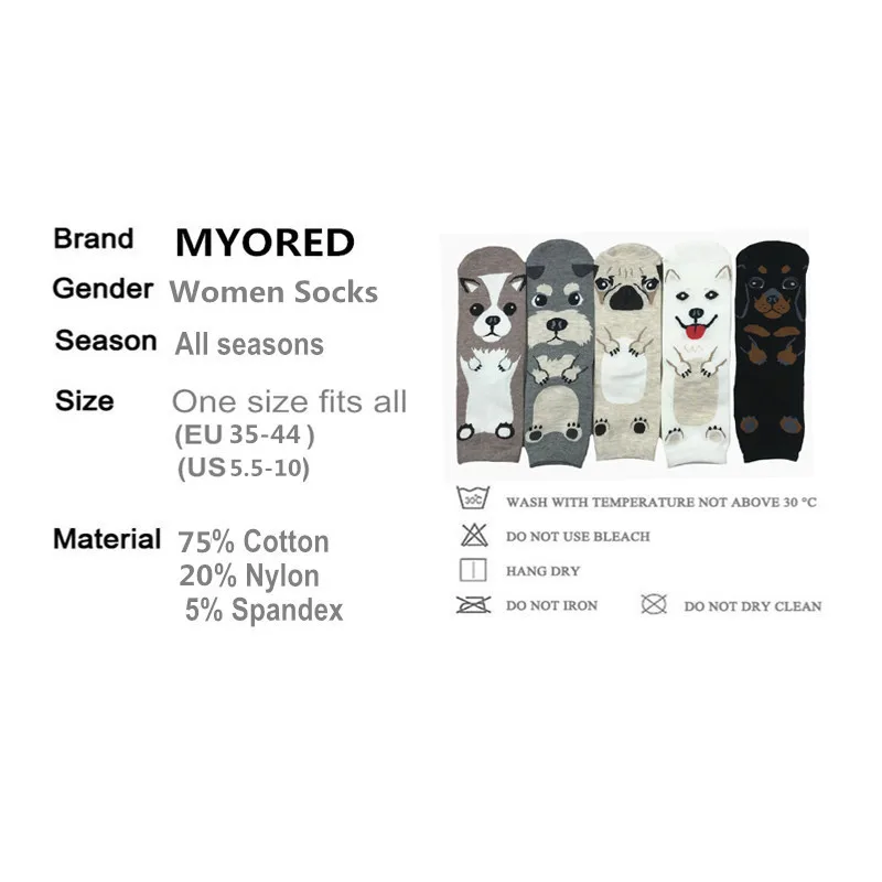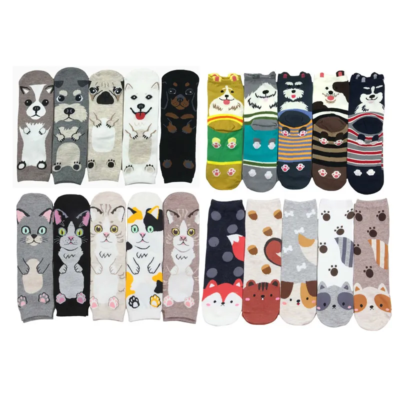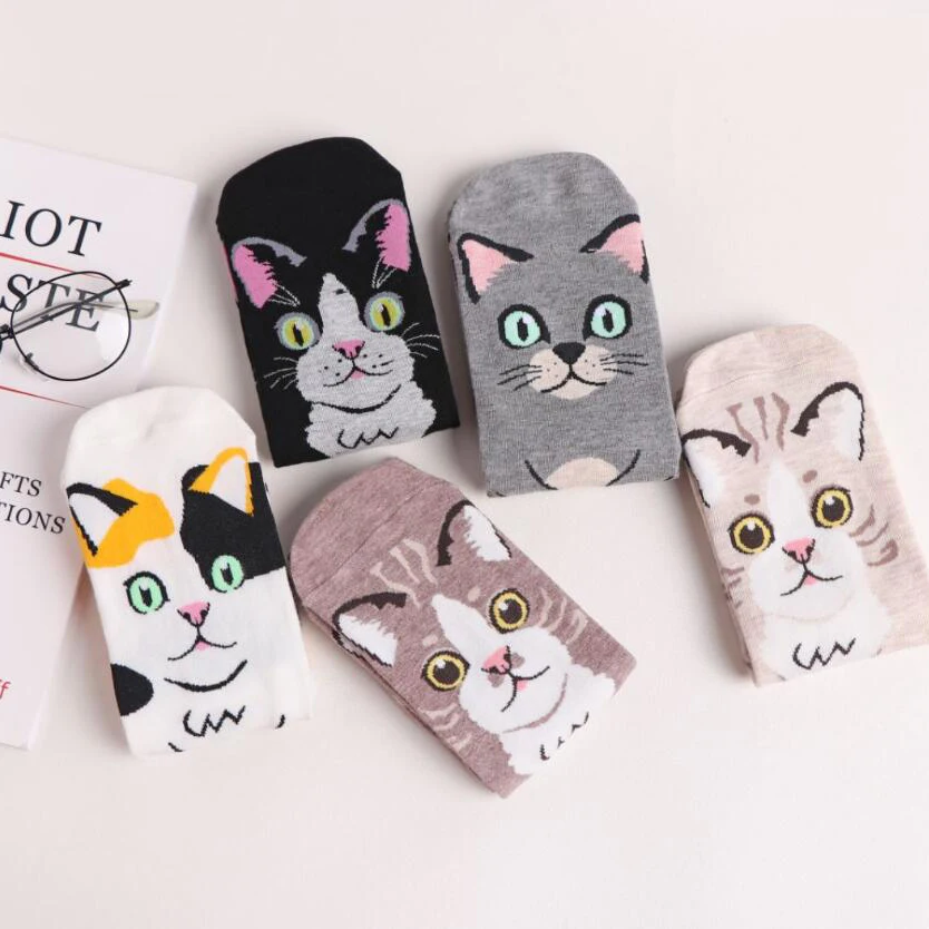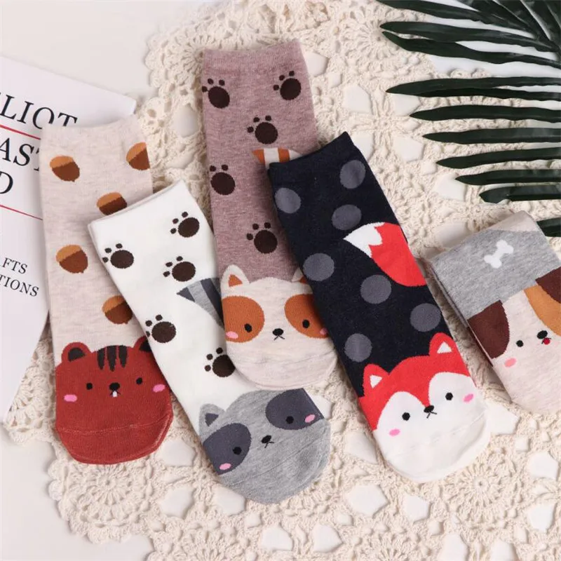 5 пар женские носки с принтом кошка маленькая собака животного Невидимый Носки тапочки из хлопчатобумажной ткани женские летние Хаски ботильоны Kawaii милые носочки без коробки