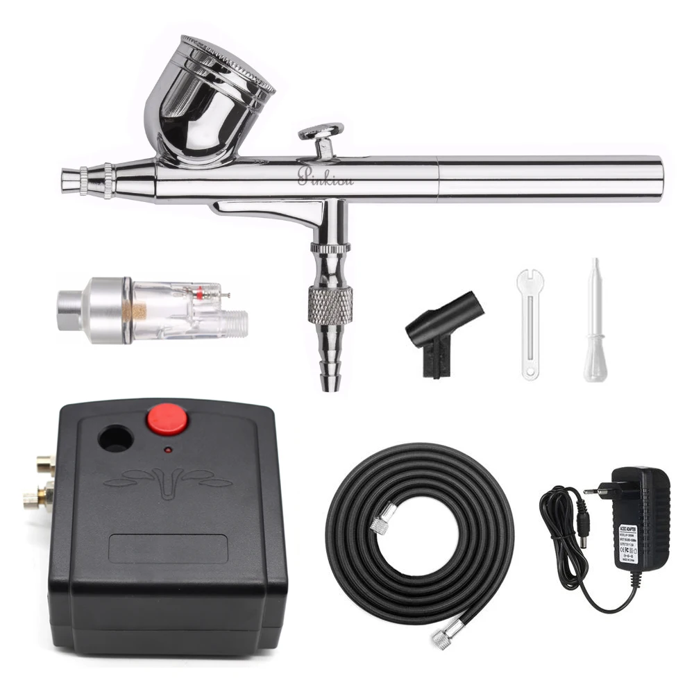 0,3 ММ Аэрограф: 1 * двойного действия 0,3 ММ Аэрограф 1 * капельница 1 * мини ключ Компрессор: 1 * воздушный шланг 1 * воздушный компрессор 1 * трансформатор переменного тока 1 * Руководство по эксплуатации воздушного компрессора
