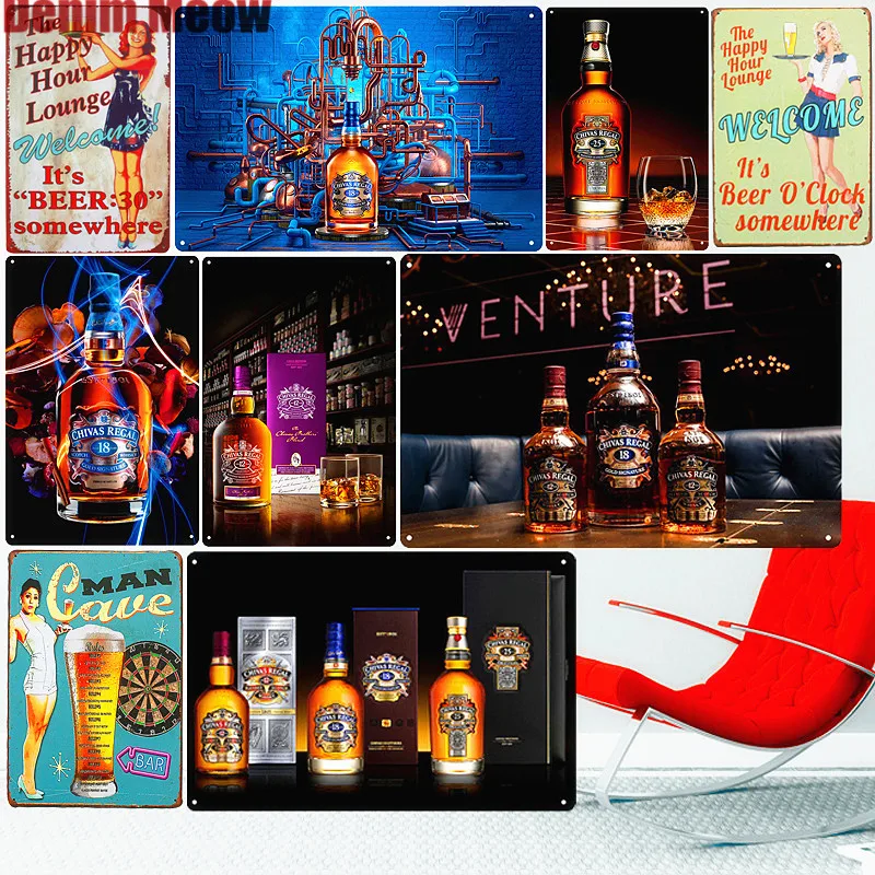 Винтажная металлическая жестяная вывеска для пива Chivas Regal, настенные наклейки для бара, паба, клуба, украшения для дома, Настенный декор, виски, художественный плакат, тарелки