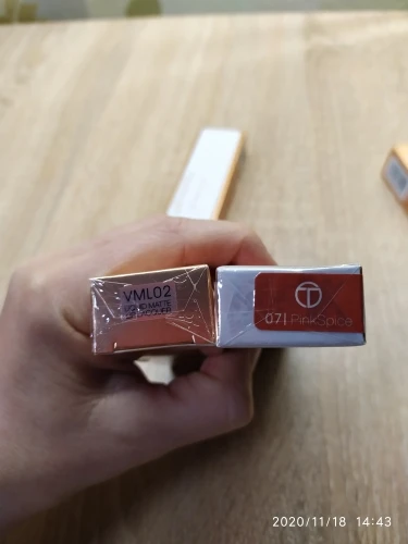 Помада отличная, упаковка шикарная! Описанию и фото соответствует. По качеству стойкая, застывает на губах, но мягкая и нежная, не пересушивает губы, не липнет.