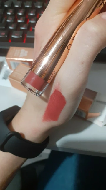 Я очень люблю косметику этой марки, но никогда цвета нормально не совпадают с картинкой, поэтому ставлю 4 звезды. Приятный запах. Помада матовая, стойкость так себе, чай не выдерживает, надо подкрашивать. А потом уже получается много слоев и не комфортно. Но в целом ничего. Пользоваться буду. Кстати упаковано все отлично!