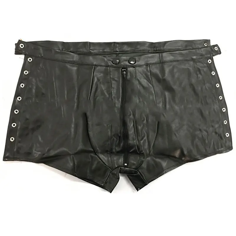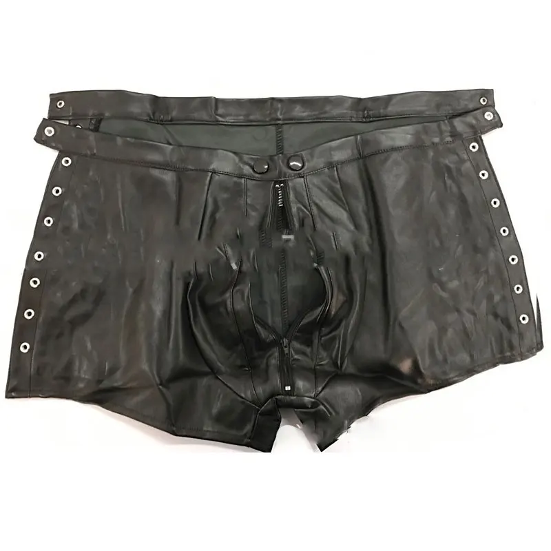 Пикантные Для мужчин дикий PU Искусственная кожа застежка-молния с открытой промежностью короткий боксерский бандаж Клубная одежда бандаж для фетиша легкое белье эротическое белье FX1030
