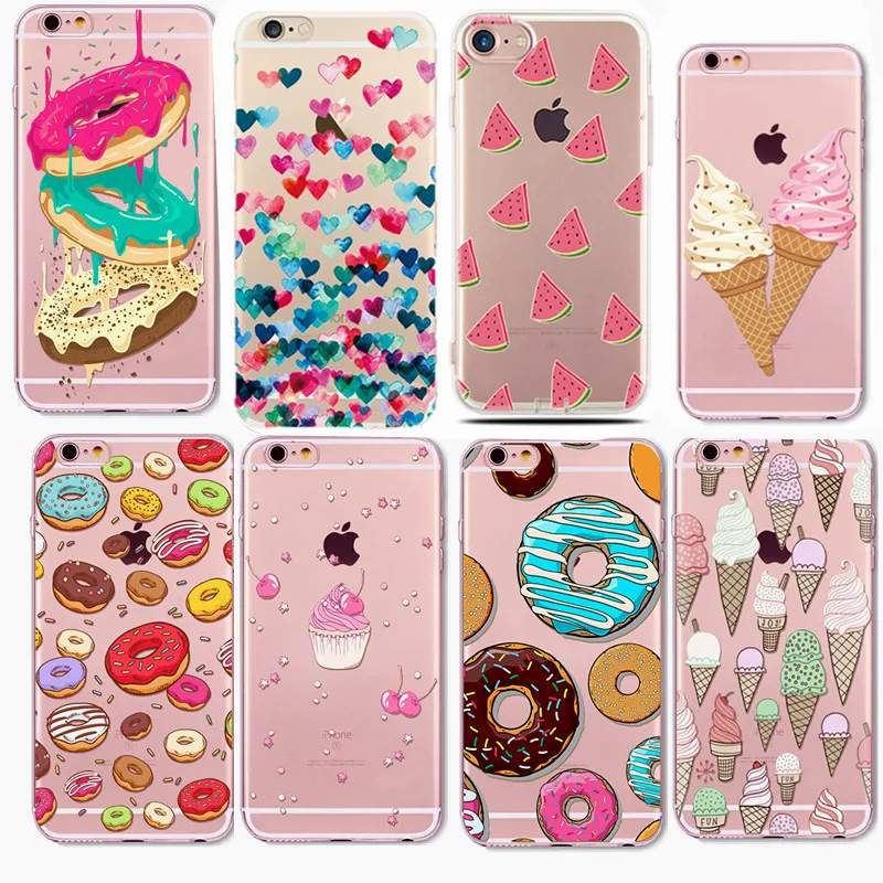 Радужный цвет еда пончики Макарон телефонные чехлы для iphone 6 6S 5 5S SE 7 8Plus SE 2020 пицца прозрачный мягкий ТПУ чехол SE2