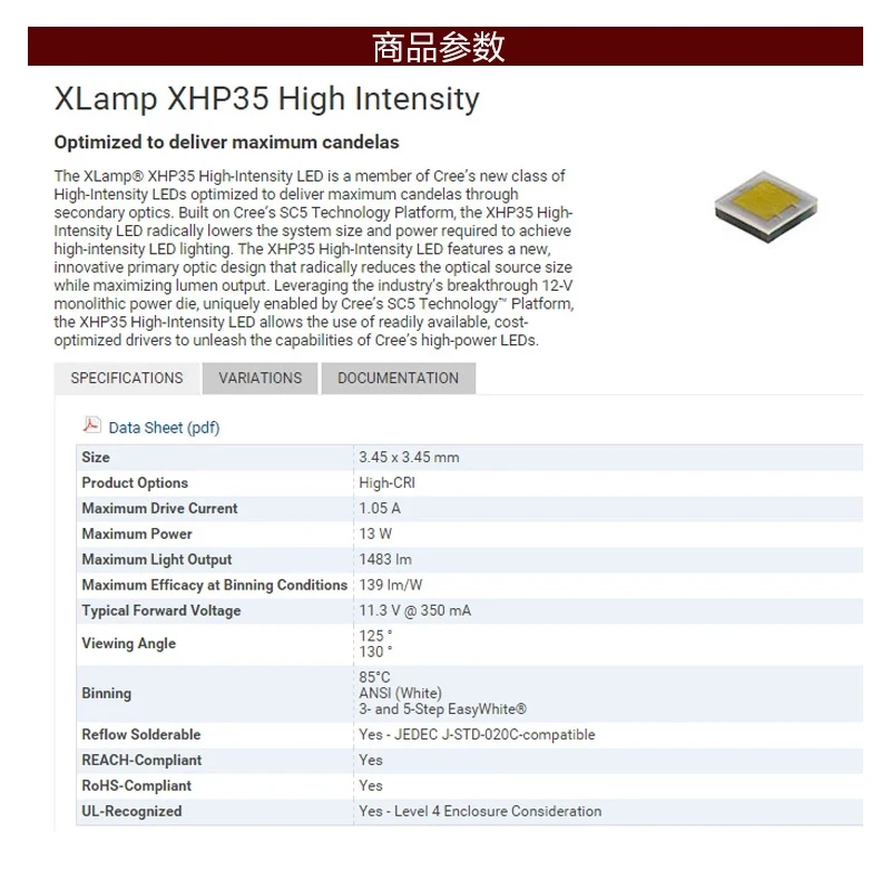 1 шт., 10 шт., 12 В, высокая мощность 13 Вт, новейший Cree XHP35 HI-White 6500K светодиодный излучатель с DTP медной MCPCB для фонарика, сделай сам