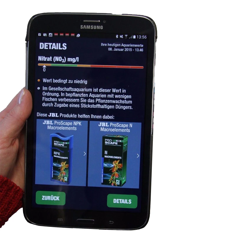 Окуните полосу анализа в воду в течение 2-3 секунд, встряхните ееПоложите его на справочную таблицу цветов.С помощью бесплатного приложения ProScan (в Apple Store и Google PlayStore) Выберите тип водыОтсканируйте цветную таблицу, как qr-код, и подождите короткое время для получения результата (приложение рассчитает, сколько времени займет). Результат будет отображаться в мг/л, ° твердость и значение pH.Значения будут оценены приложением (Хорошее-среднее-плохое), и он также даст рекомендации по оптимизации.Условия окружающего освещения будут автоматически оценены и приняты во внимание для калибровки цвета.Полоса для анализа JBL ProScan была специально разработана для оценки с помощью цветовой таблицы.Точность не может быть гарантирована с другими тестовыми полосками.