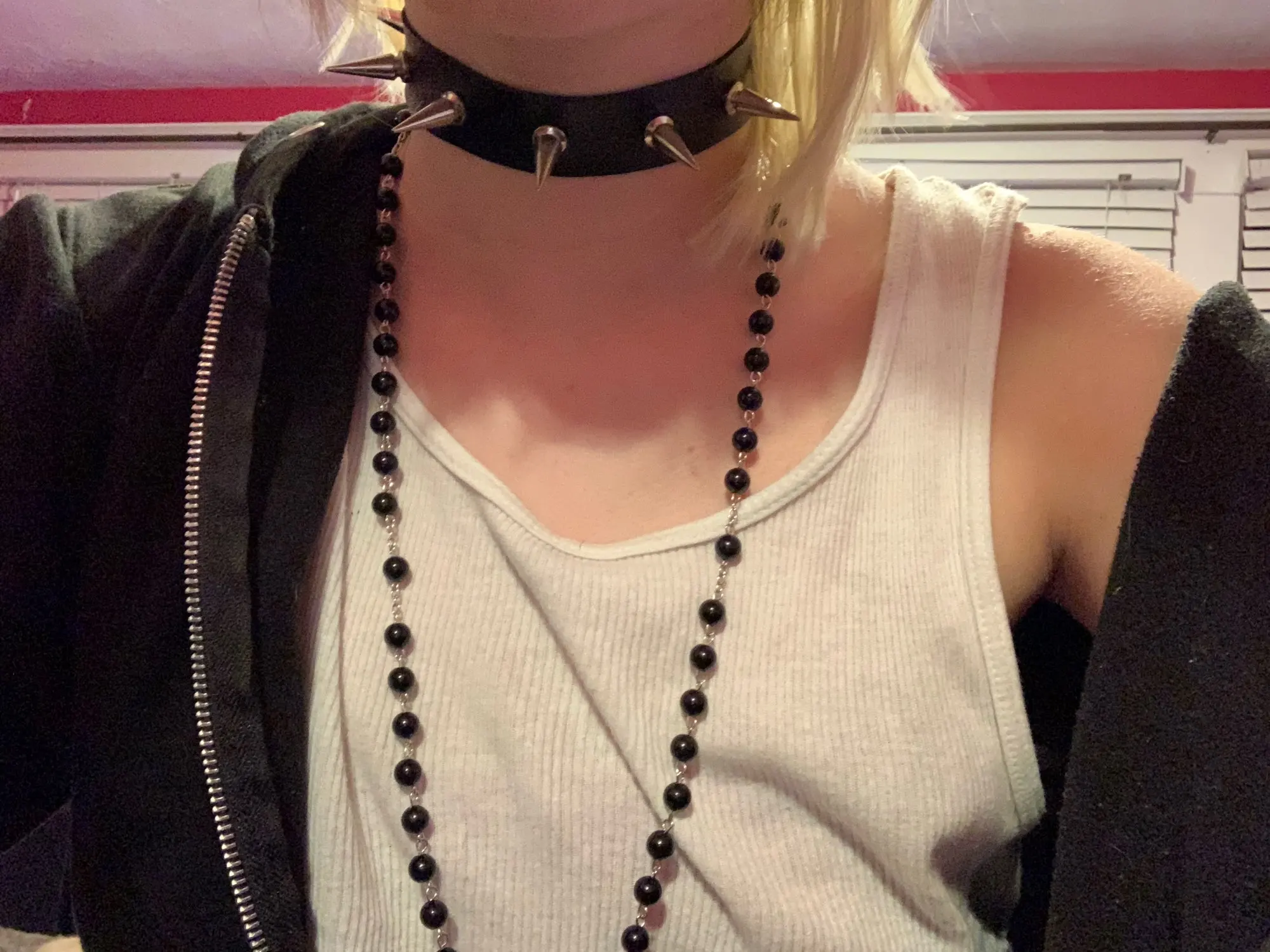 i am so amazed, my neck is really thin so i had to make an extra hole in some chokers because they wouldn’t fit but this one fits perfectly and it’s adjustable , it is super comfortable and it looks so cool! the spikes are pointy but not too long and also not too sharp to harm someone the material is really good quality for such a low price, would really REALLY recommend getting it