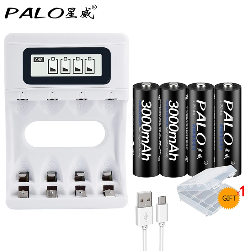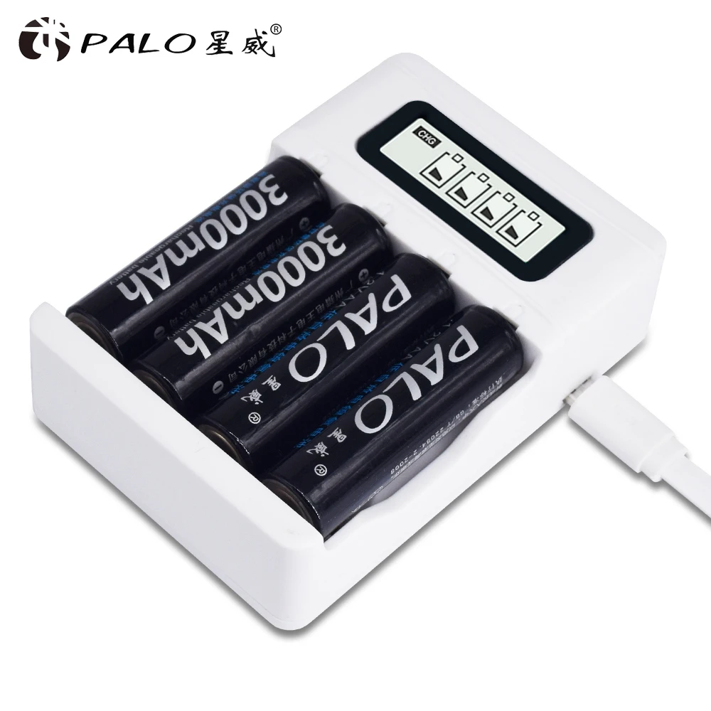 PALO Smart LCD USB зарядное устройство для Ni-MH Ni-Cd AA AAA аккумуляторная батарея + 4x1,2 V Ni-MH 3000mAh AA перезаряжаемые батареи