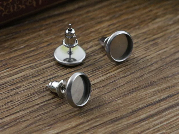 (Никогда не выцветает) 20 шт 6 мм 8 мм 10 мм серьги из нержавеющей стали базовые шпильки для ушей Камея Настройки Кабошон базовый лоток пустой (с задней частью)