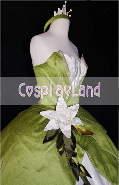 Принцесса Тиана костюм Зеленый бальное платье на заказ костюм с листом корона для взрослых женщин модное платье