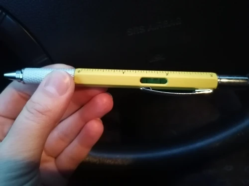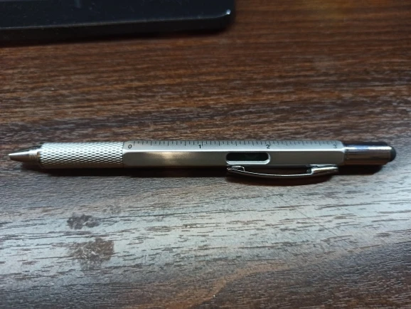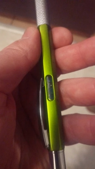 Ручка хорошая, пишет отлично. Уровень показывает верно (проверено с помощью другого уровня). Есть небольшое замечание: линейка в см и дюймах имеет начало не с одного места, шкалы немного сдвинуты относительно друг друга (хотя на фото продавца шкалы начинаются с одного места).