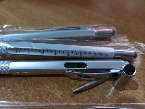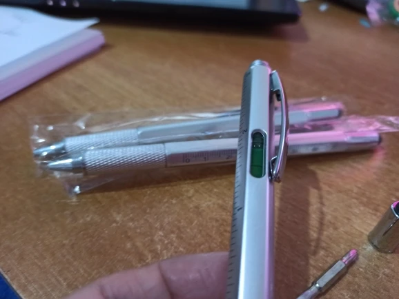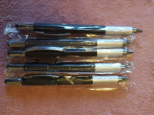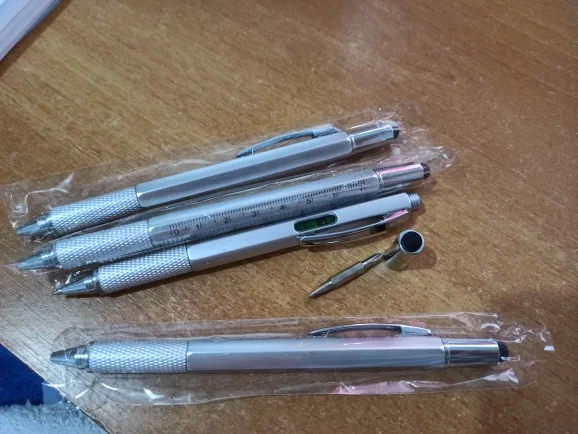 Заказывал 8 ручек - по одной каждого цвета и комплект стержней для замены, так как стержни короткие, не такие как на фото. Сами ручки соответствуют описанию, сделаны аккуратно, подойдут в качестве небольшого презента или, если по прямому назначению, для резервной "писалки", так как не очень удобно держать, да и чернила быстро иссякнут. На четырёх из восьми ручек уровень показывает истину. Радует наличие мелкой отвёртки под шлиц и крест. Были пару раз случаи, когда надо было разобрать какую-то мелочёвку, типа пульта, для смены батарейки, и приходилось пользоваться подручными средствами. Так что один из девайсов будет "прописан" в авто. Доставка до Н.Новгорода заняла три недели. Трек не отслеживался.