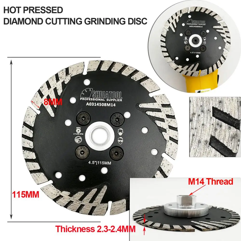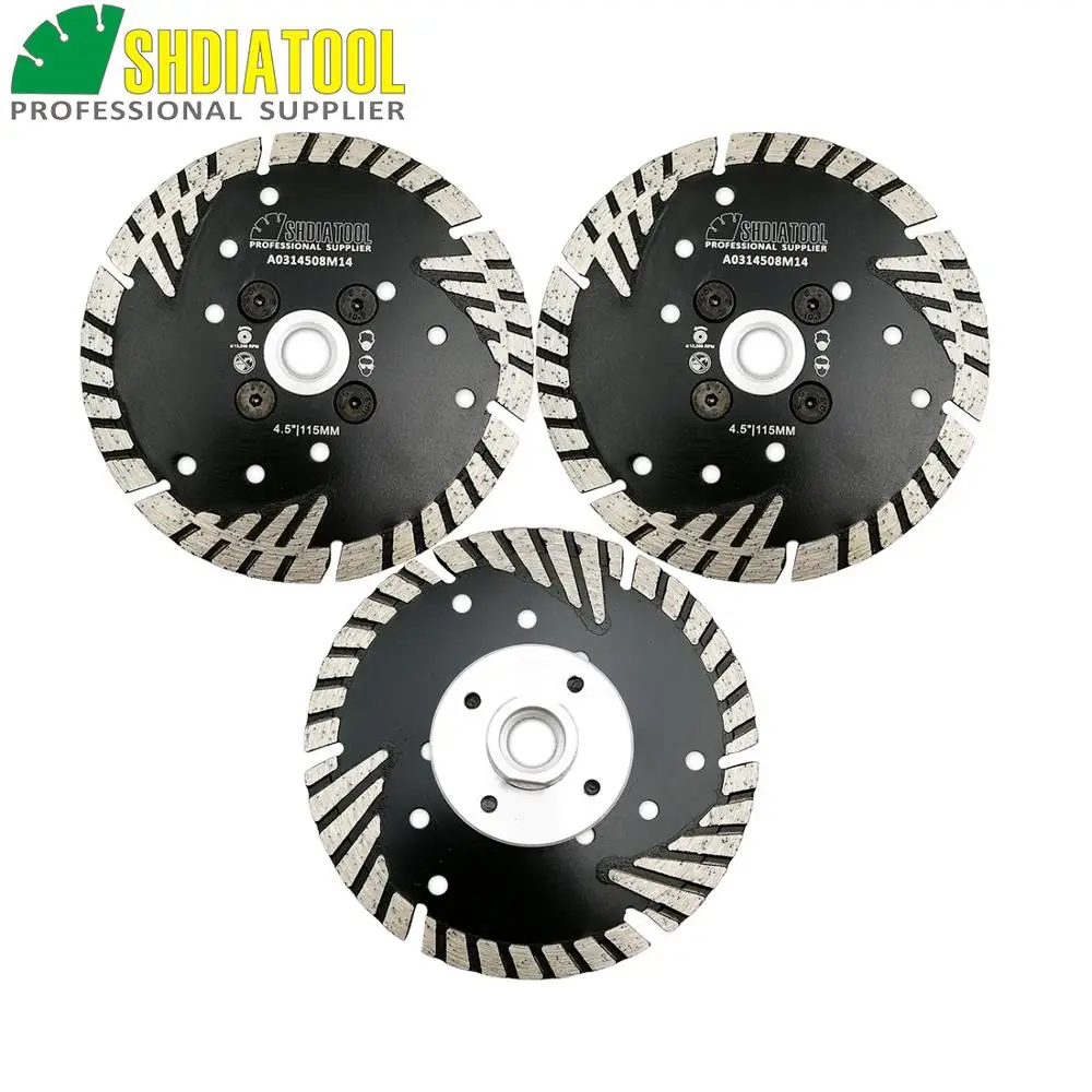 SHDIATOOL 3 шт.pk M14 резьба 4,5 "115 мм алмаз горячей прессовки пилы режущие диски наклонная защита зубья турбо лезвие колеса