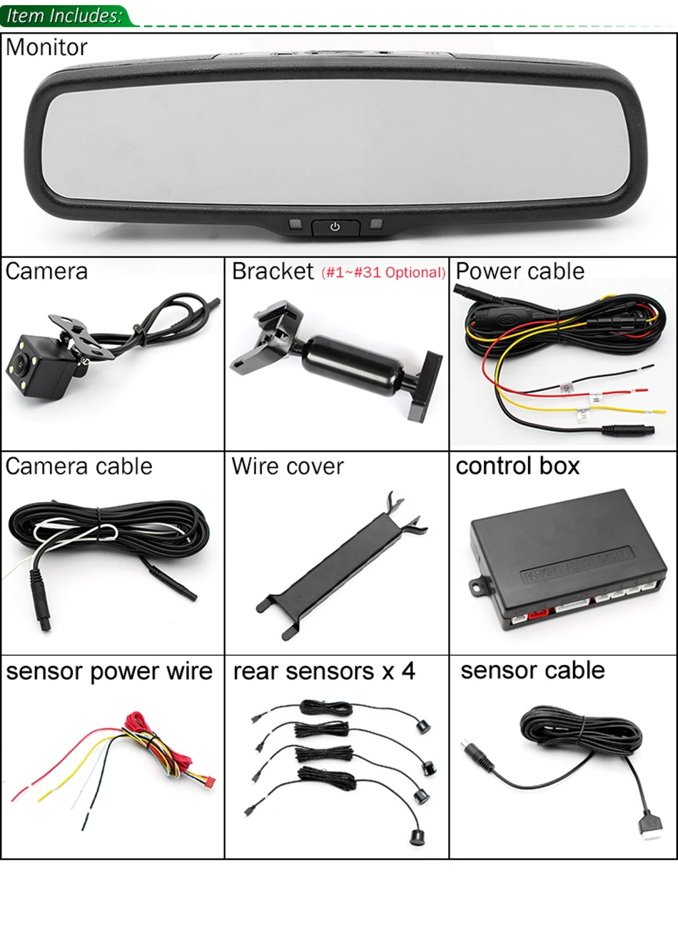 Когда вы снимаете оригинальное зеркало заднего вида.Вы можете увидеть адаптер на ветровом стекле.Список кронштейнов