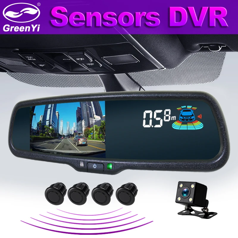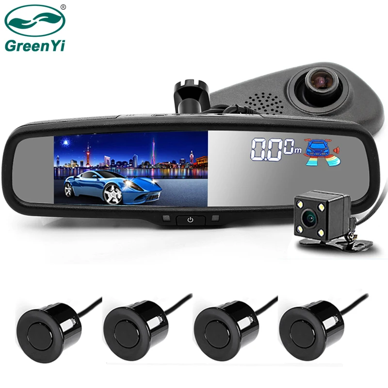 Автомобильный видеорегистратор GreenYi, зеркало заднего вида с 5 "камерой с двойным объективом, 1080P, с 4 датчиками парковки
