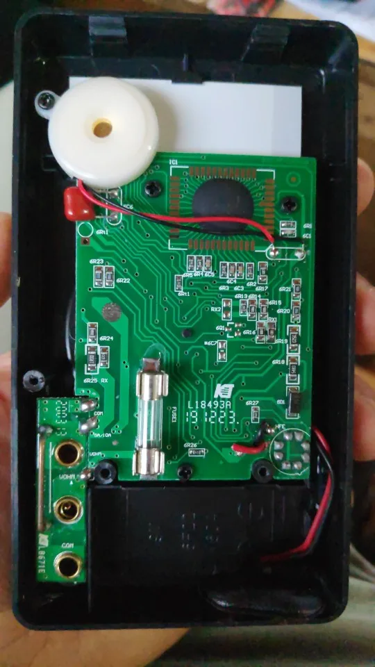 схема не такая как на фотографиях в описании. я не увидел предохранитель, китаец пояснить толком не смог, говорит мол новая версия конструкции и в остальном все тоже самое, что и в старой версии, но на защиту от "дурака" я проверять не буду. зуммер имеется, все функции работают, цифры четкие. один аудиоусилитель им был уже успешно отремонтирован. батарейка в комплект конечно же не входит.