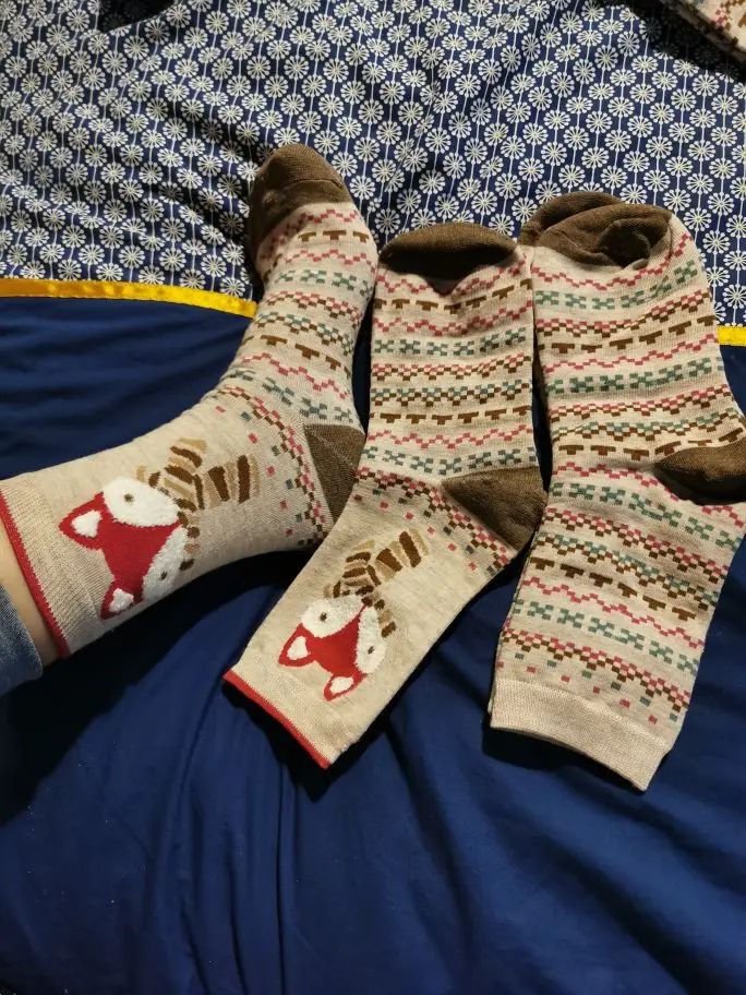 PEONFLY 2 парыПартия Забавный Рождественский Санта Меха лисы для женщин в стиле пэчворк зимние теплые мягкие хлопковые милые носки для женщин на Рождество