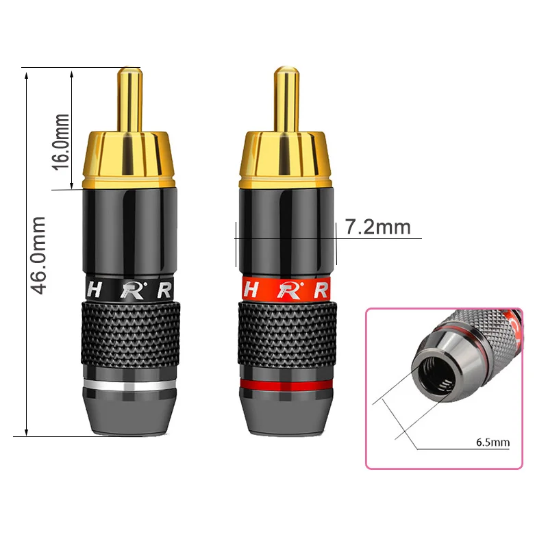 10 шт.лот разъем RCA позолоченные Провода разъем 6 мм кабель rca штекер Профессиональный Динамик аудио адаптер 5 пар красный + черный