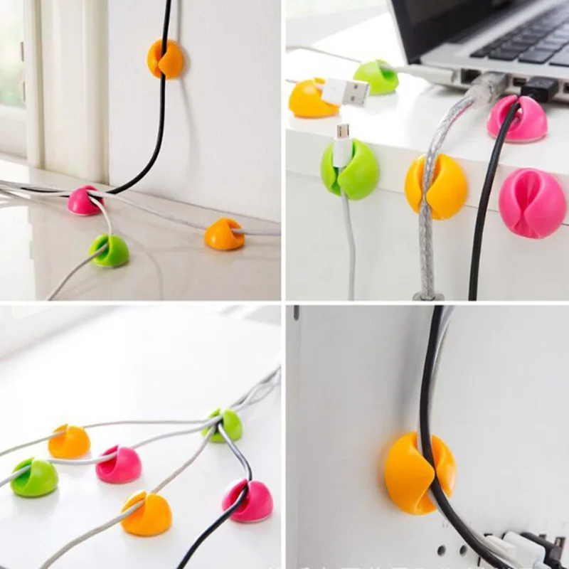 20 шт./лот, случайный цвет, кабель с двойным отверстием, органайзер, зажим для кабеля, аккуратный, USB зарядное устройство, держатель шнура, настольный фиксированный зажим