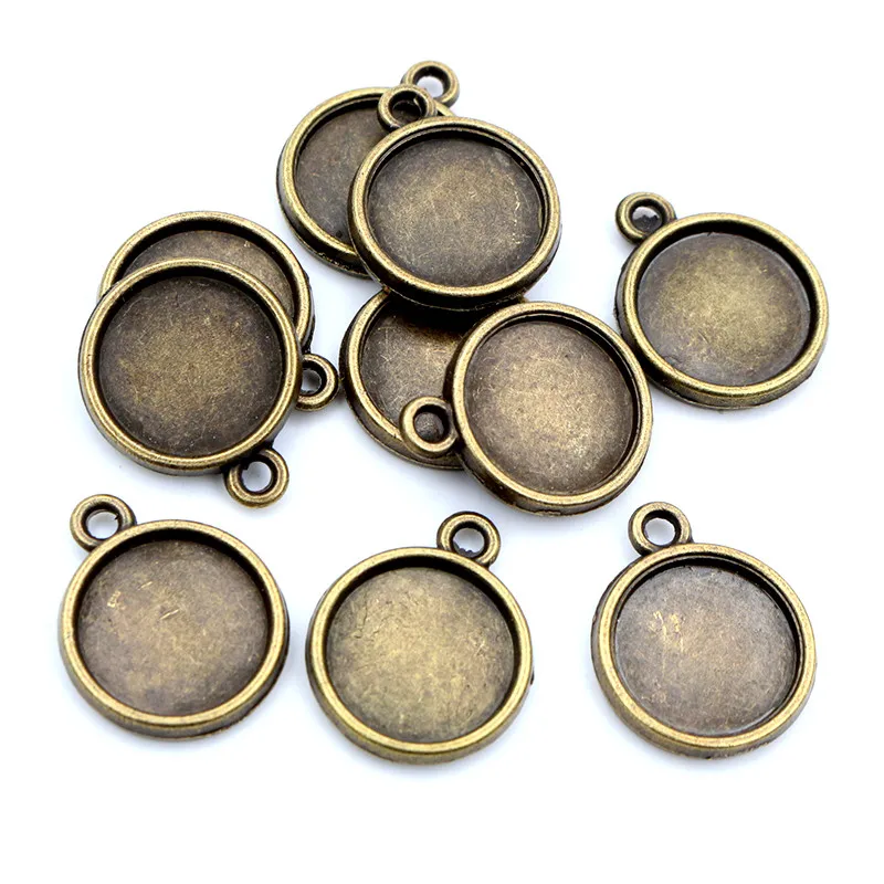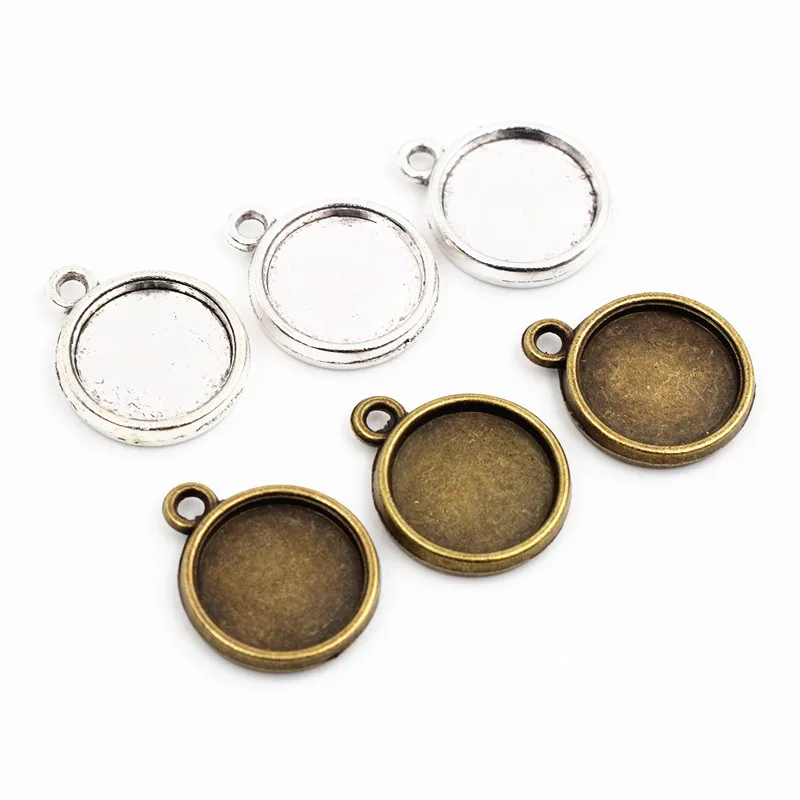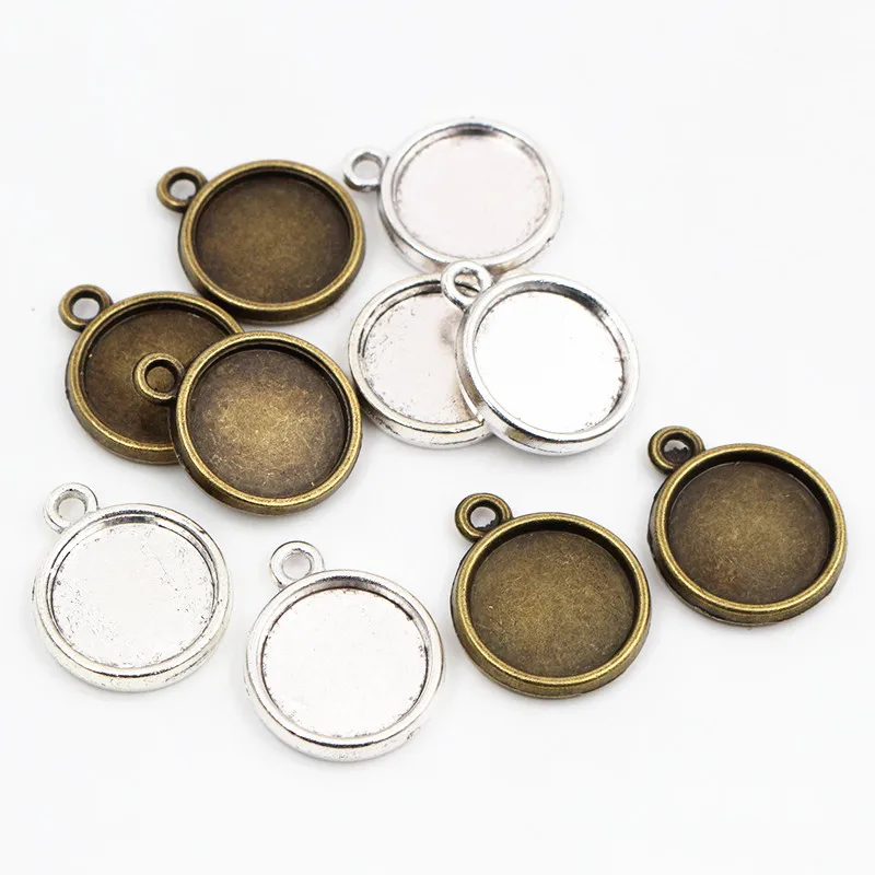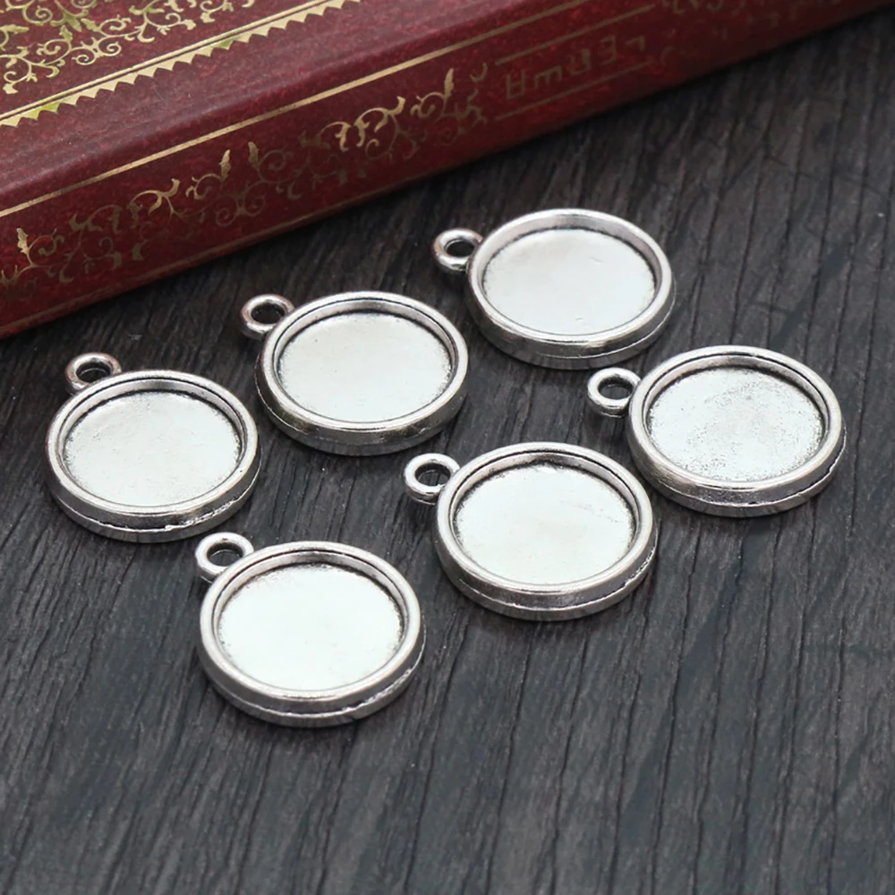 20 шт.лот 12 мм Внутренний размер Античная Посеребренная родиевое покрытие двойной простой стиль Кабошон База Камея Установка Подвески Подвеска