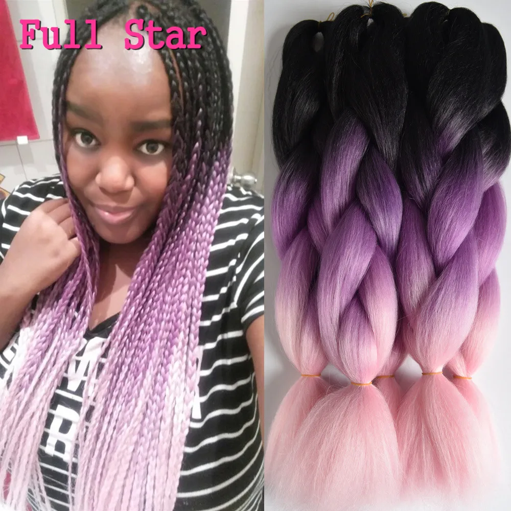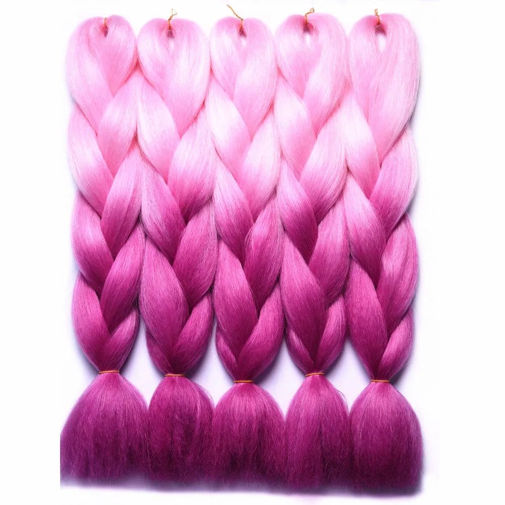 Косички для наращивания волос, 5 упак.лот, 100 г, черные, фиолетовые, розовые косички, синтетические волосы для наращивания