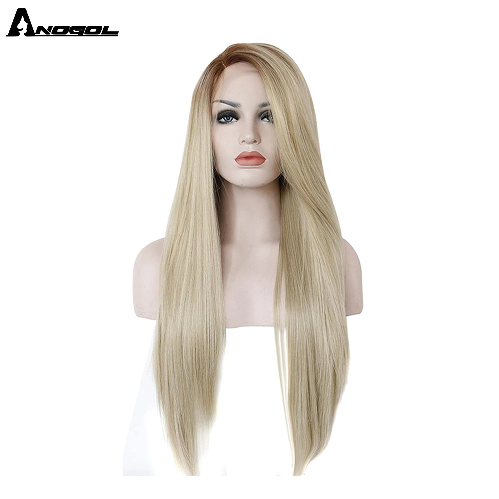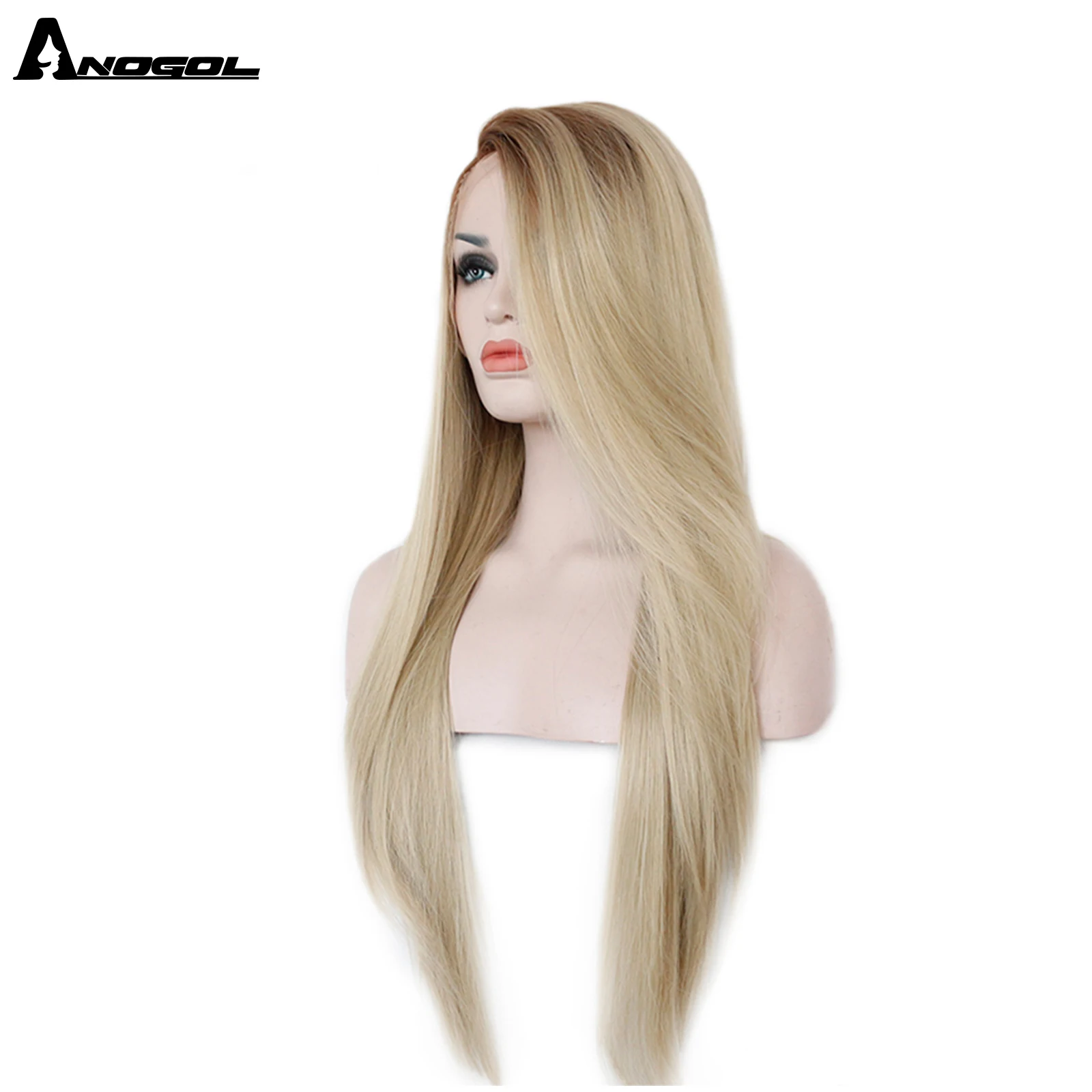 Аногол высокотемпературный волоконный бесклеевой длинный прямой Омбре коричневый до блонд синтетический кружевной передний парик для белых женщин
