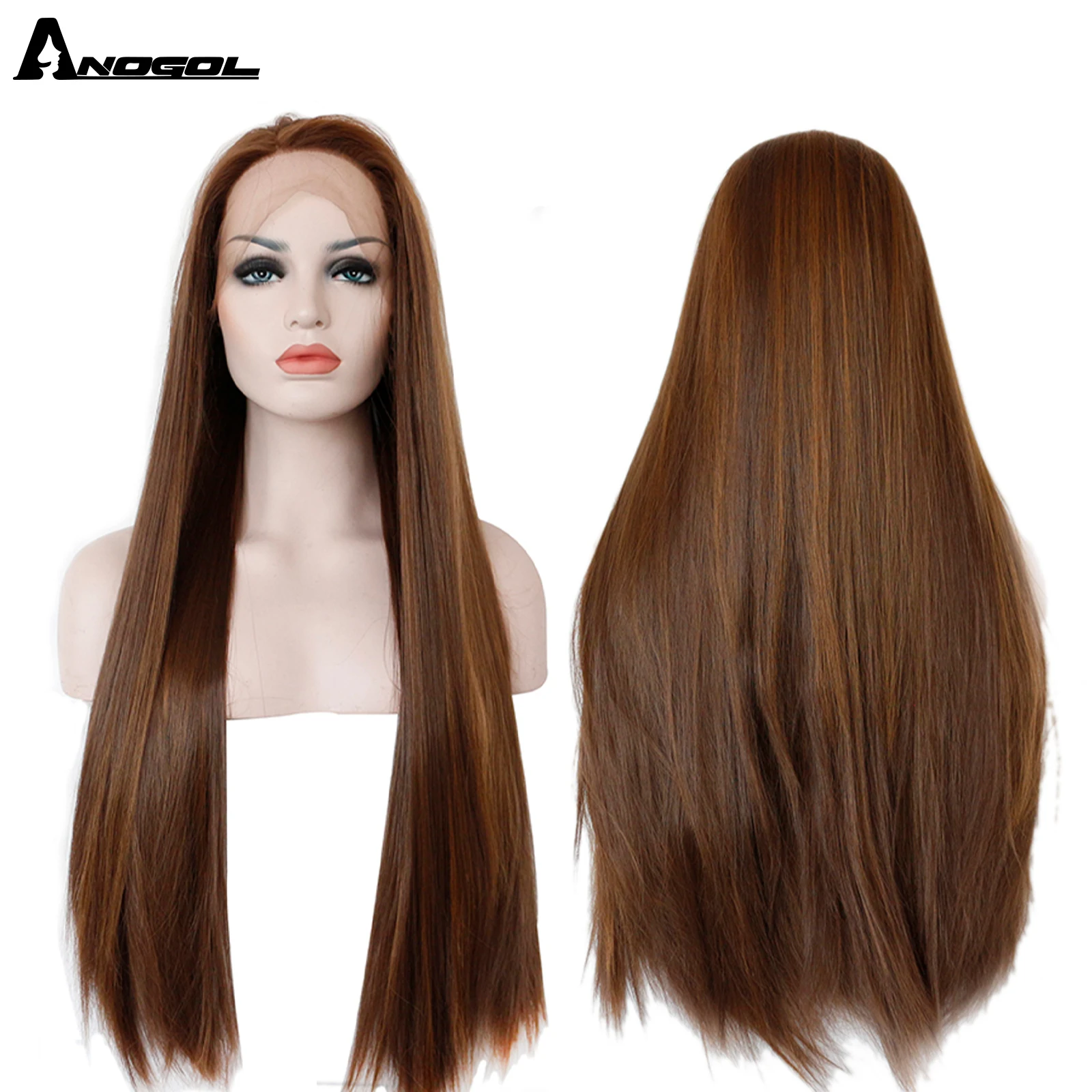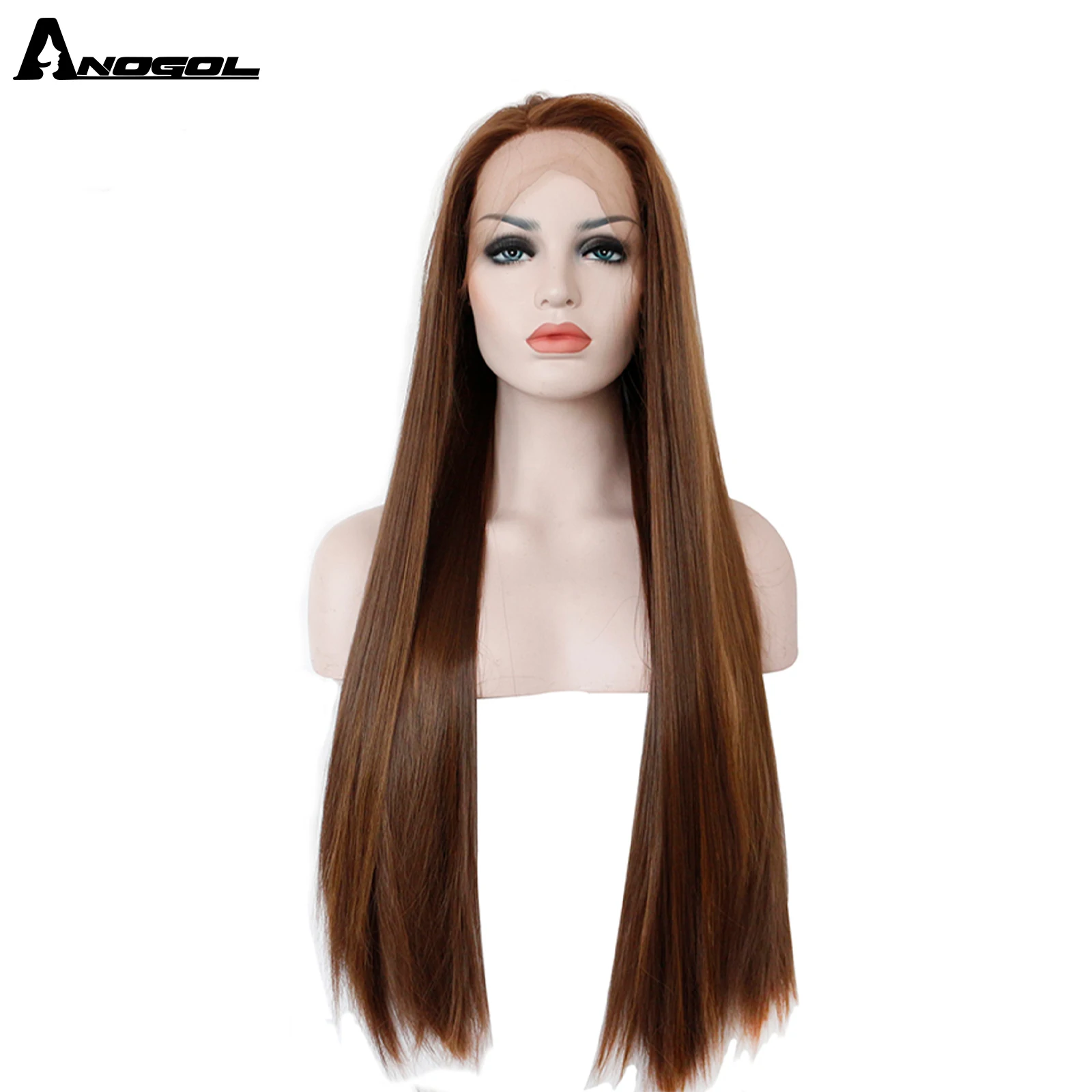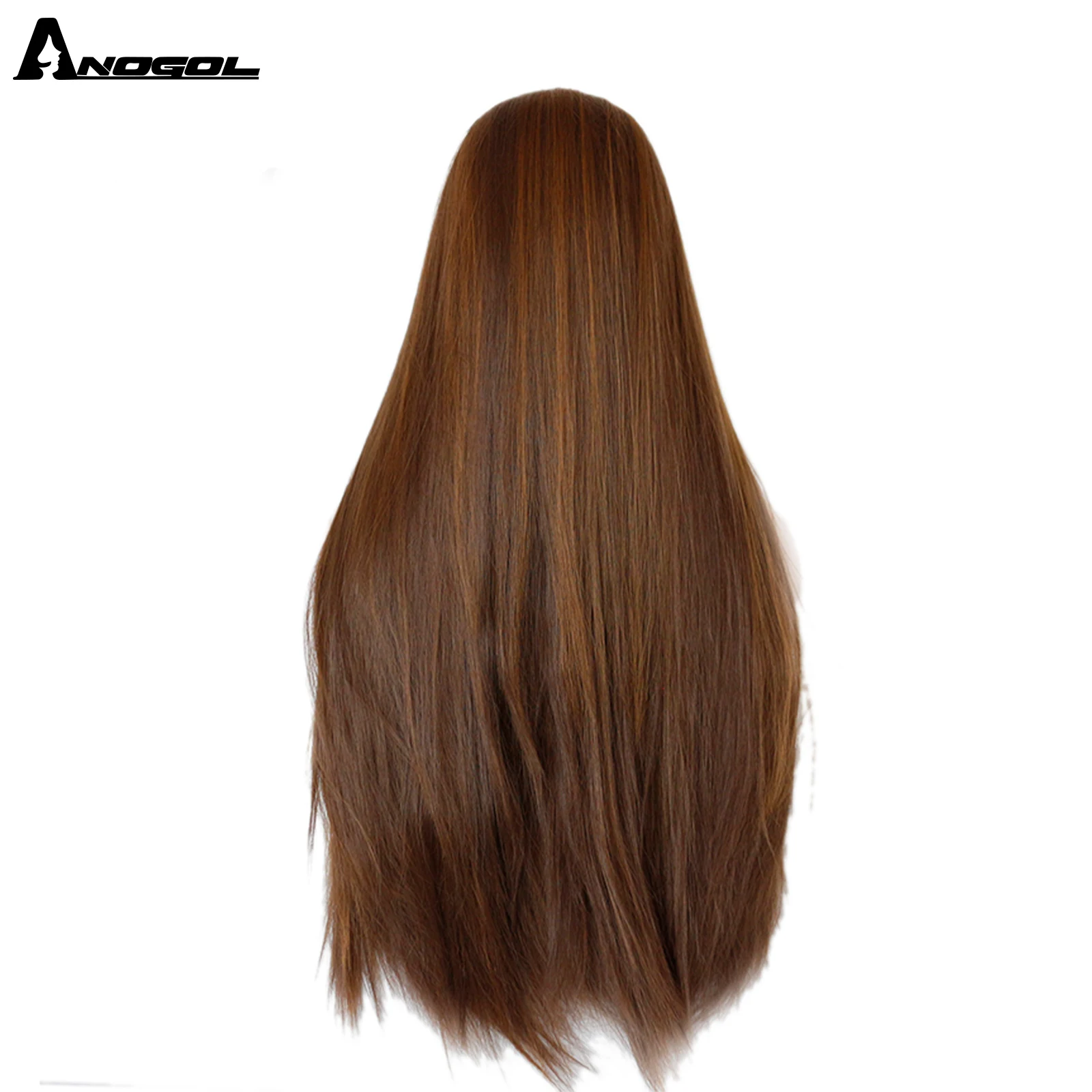 Парик Anogol из натуральных длинных прямых термостойких синтетических женских волос, темно-коричневого цвета